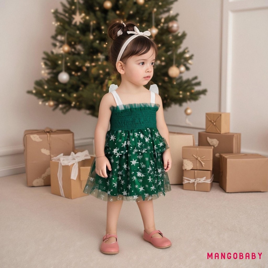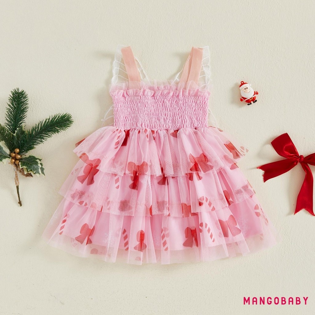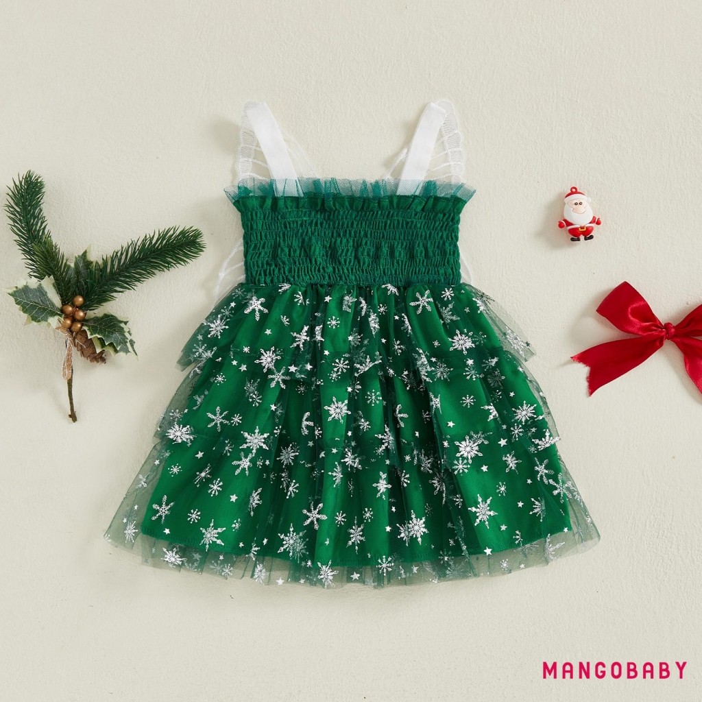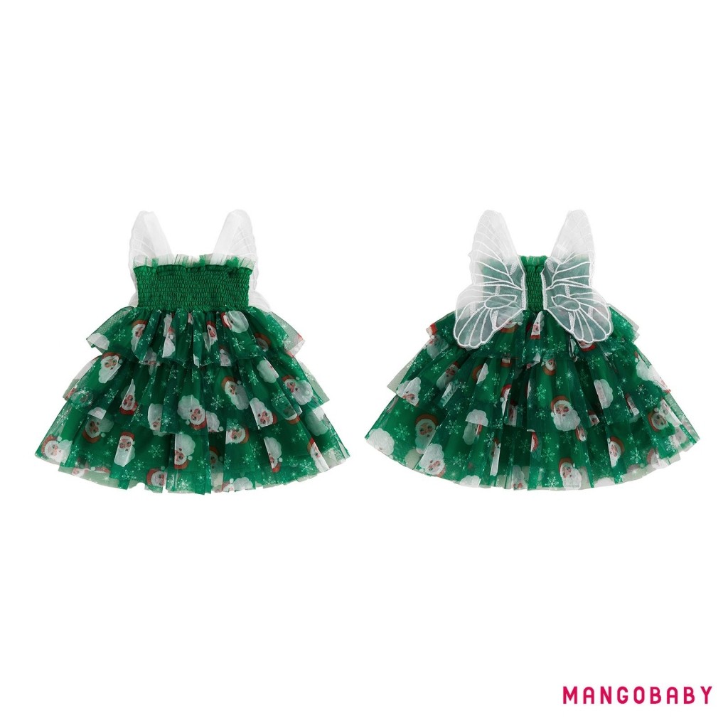 มก-(ลดราคา)เด็กวัยหัดเดินสาวชุดคริสต์มาสเกล็ดหิมะพิมพ์แขนกุด ที พวกคุณ สายชุดเค้กที่มีปีกผีเสื้อ