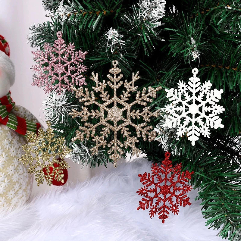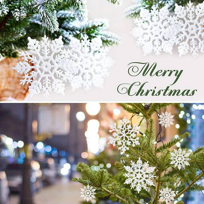 ชุดเกล็ดหิมะแวววาว 4 ชิ้น ขนาด 12 ซม. สำหรับประดับต้นคริสต์มาสและตกแต่งบ้าน ปี 2025 ❄️? #SnowflakeChristmas #เครื่องประด