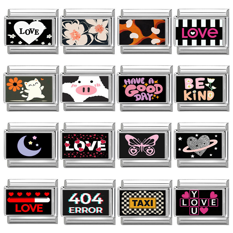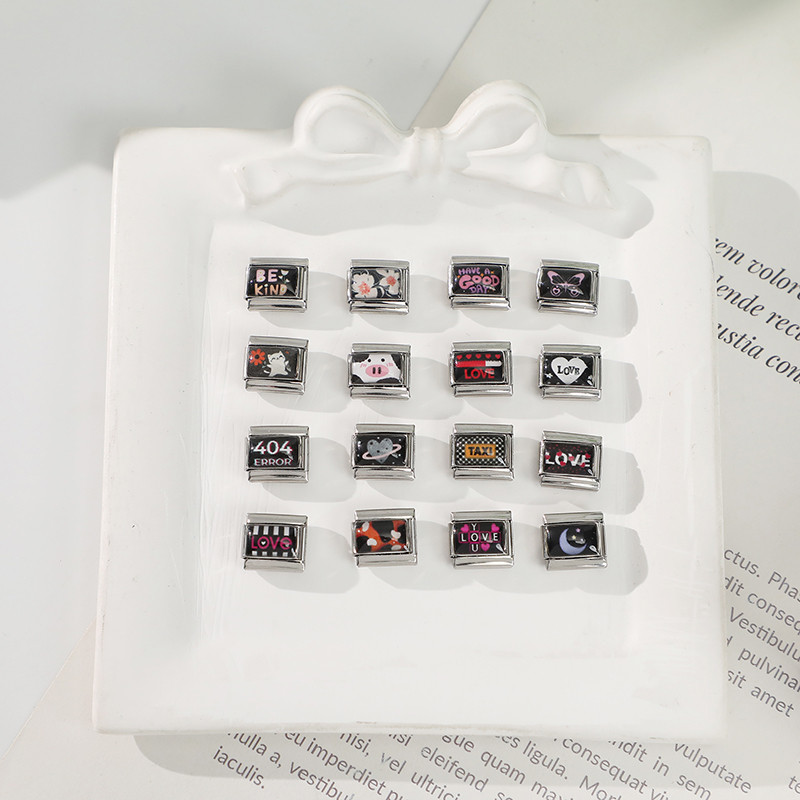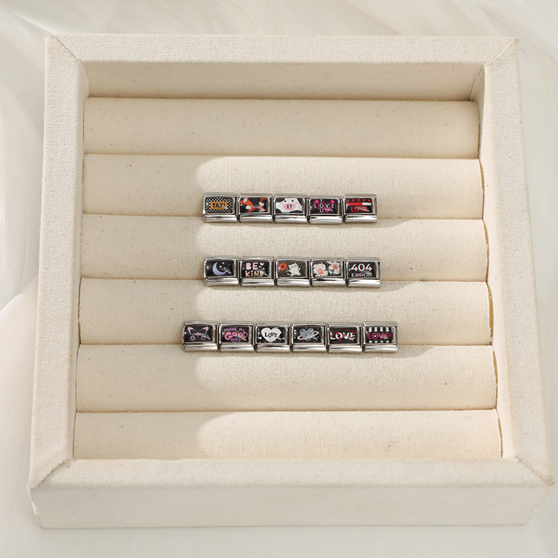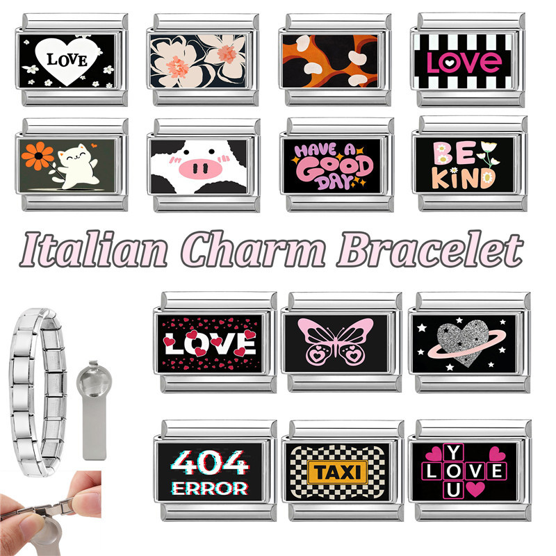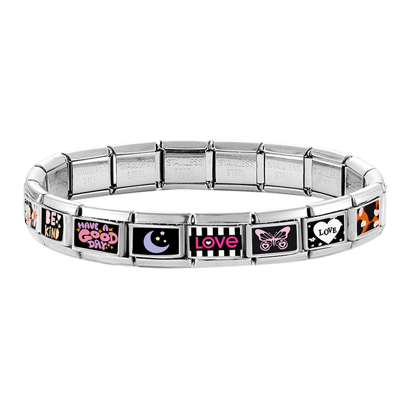 สร้อยข้อมือสแตนเลส ลายอักษรสไตล์อิตาเลียน สีดำ ขนาด_fit_9มม. เครื่องประดับ