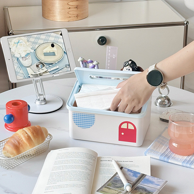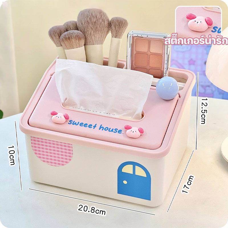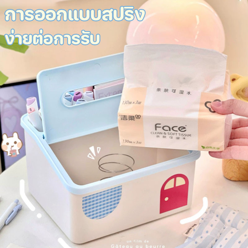 กล่องทิชชู่ 20.8*17*12.5cm พลาสติก กล่องทิชชู่มัลติฟังก์ชั่น ความจุสูง มาพร้อมกับสปริง รูปแบบการ์ตูนน่ารัก