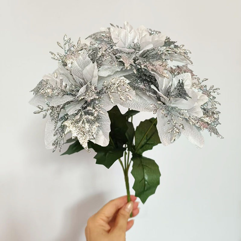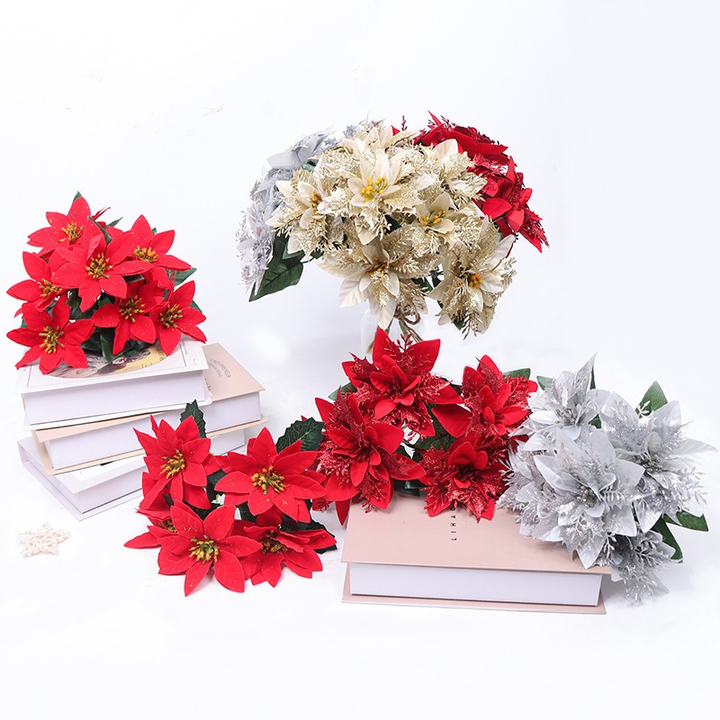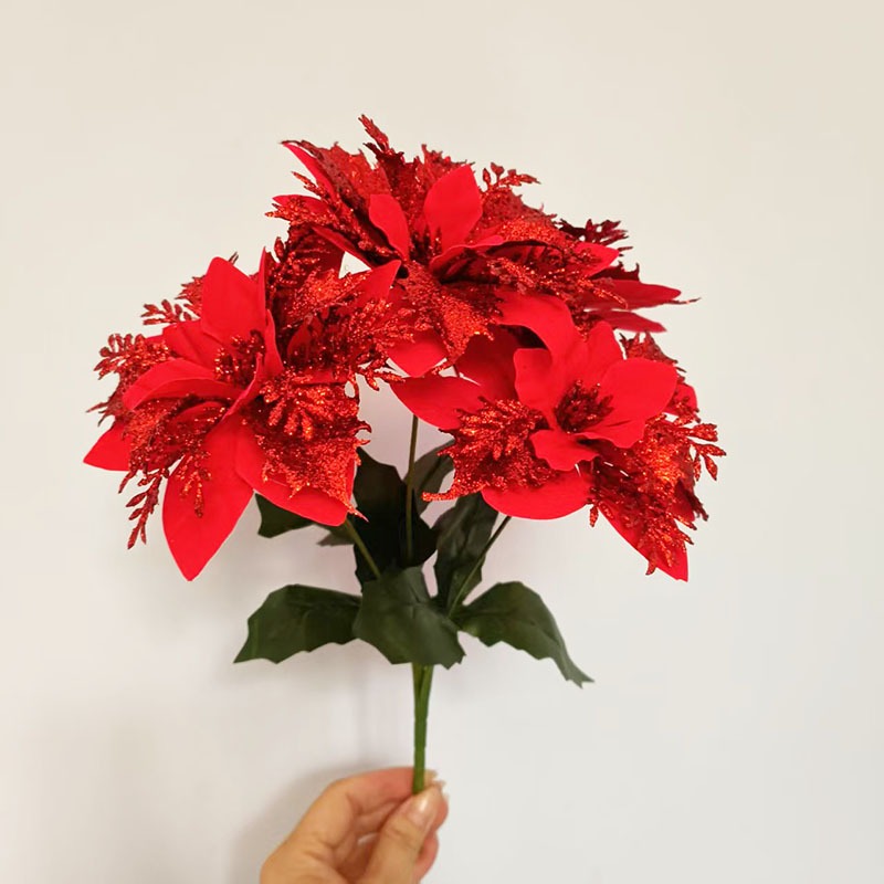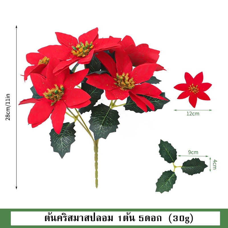 พร้อมส่ง ต้นคริสมาสปลอม 1ต้น 5ดอก(สูง 28 ซม.)