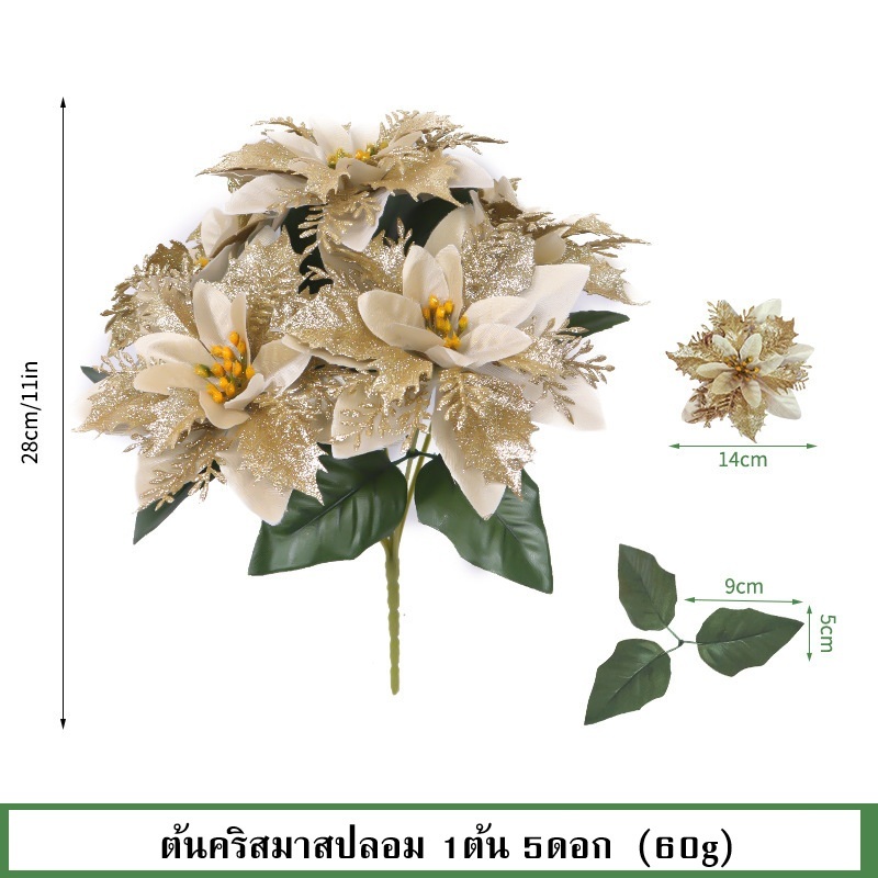 พร้อมส่ง ต้นคริสมาสปลอม 1ต้น 5ดอก
