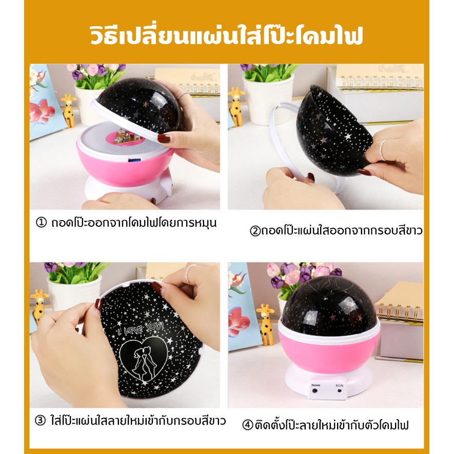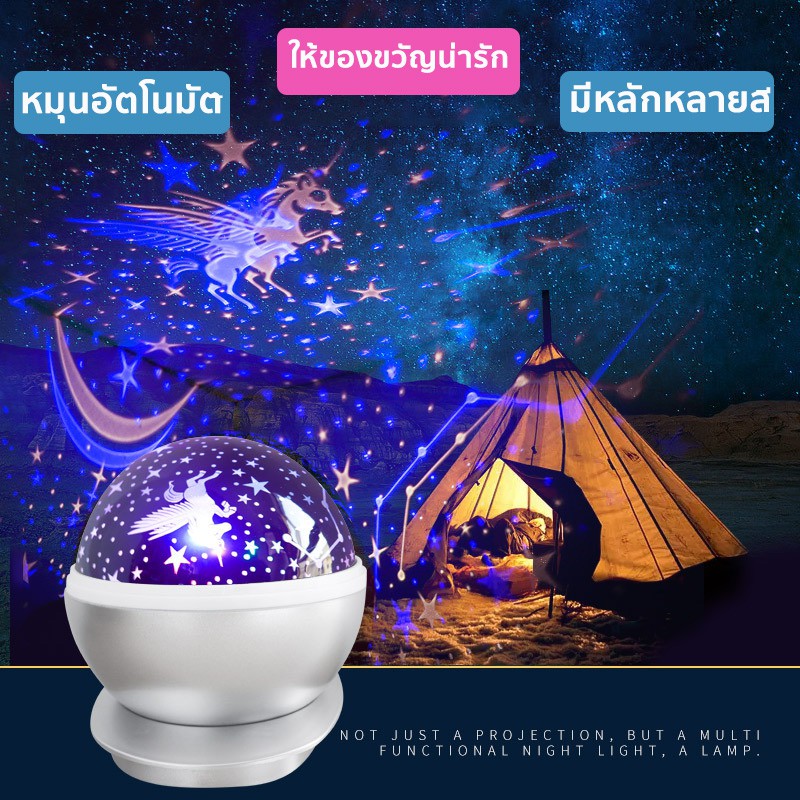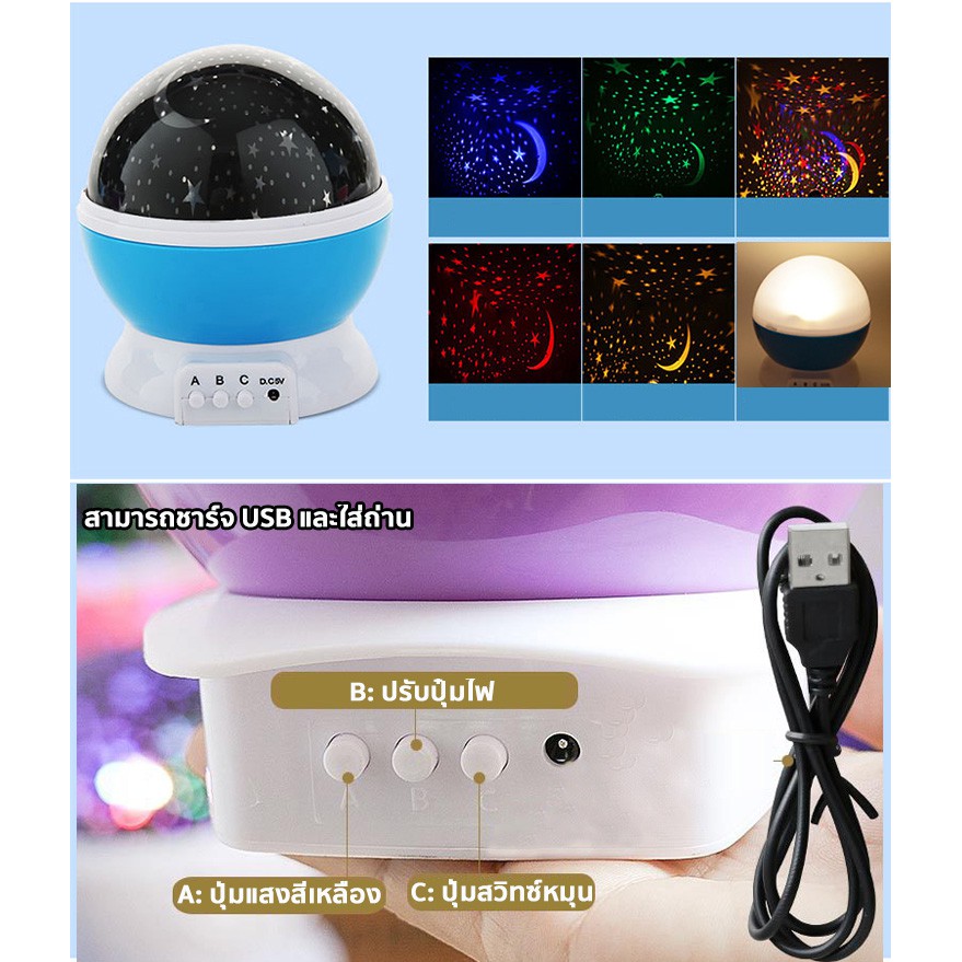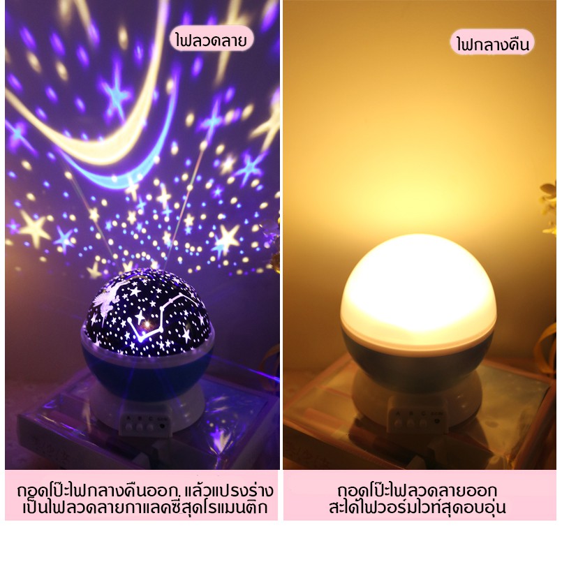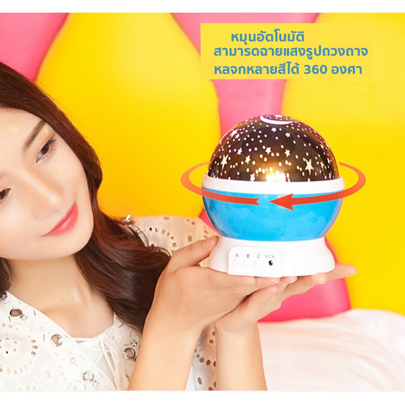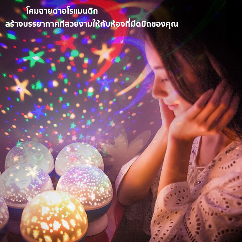 • รูปร่างทรงกลม สามารถฉายแสงรูปดวงดาวหลากสีได้ 360 องศา