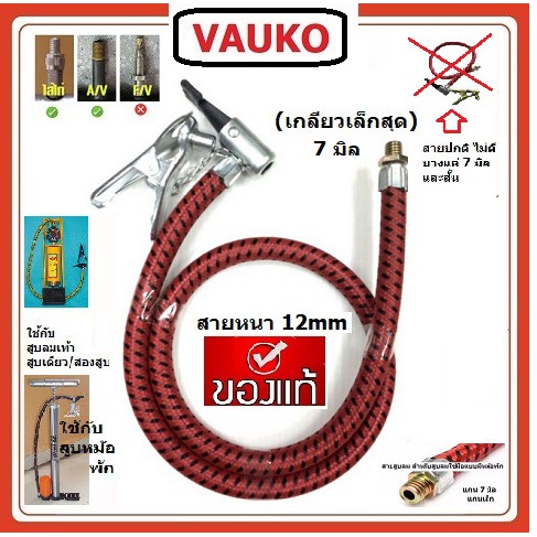 - VAUKO : FIXGEAR สายสูบลม สำหรับสูบลมมือแบบใช้หม้อพักมีเกย์หรือไม่มีเกย์ จำนวน 1 เส้น เกลียวมาตรฐาน 6-7 มิล สีแดง