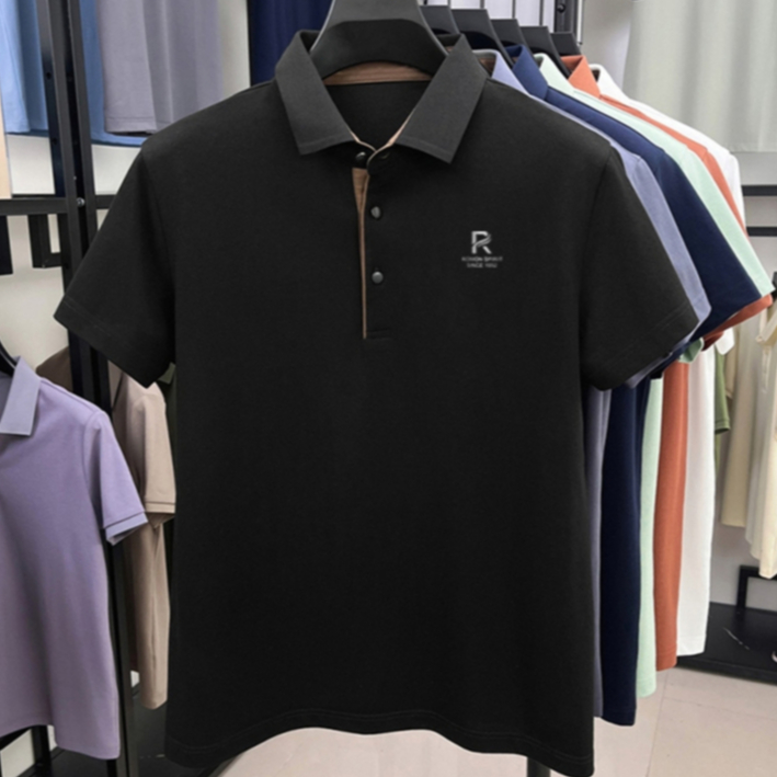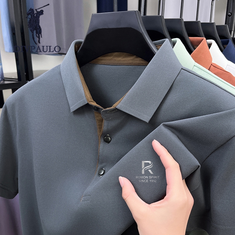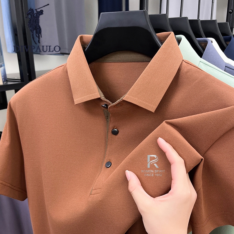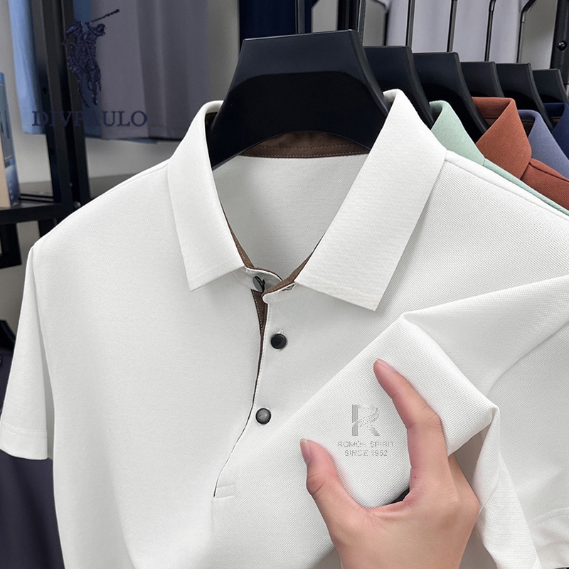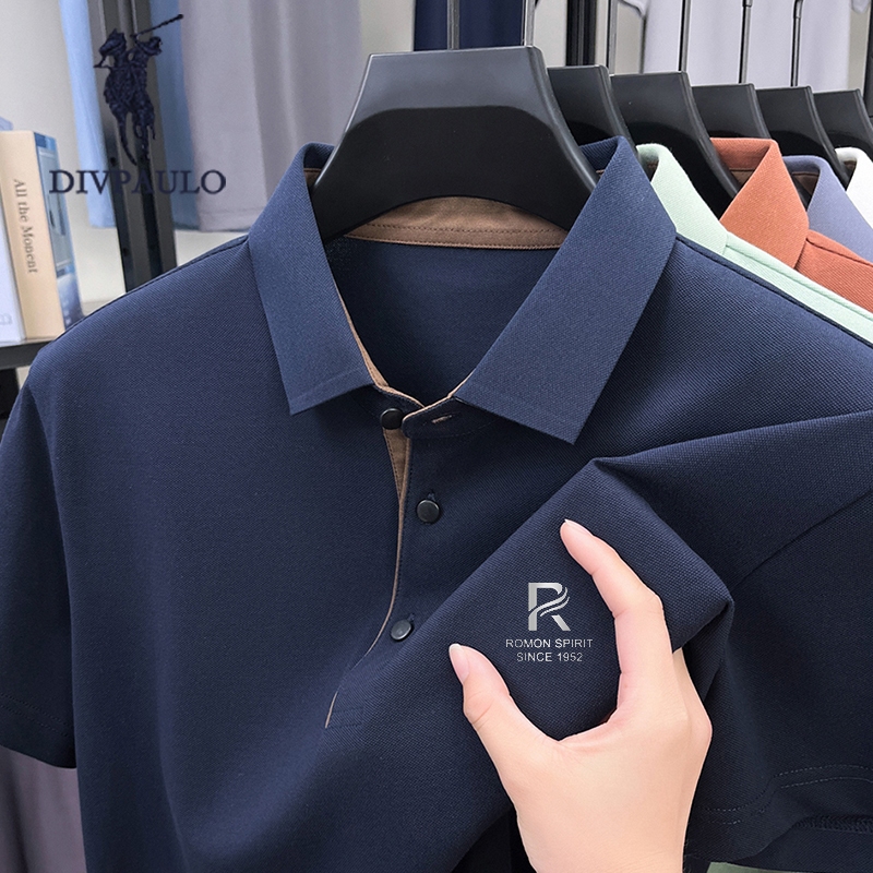 DIV POLOผู้ชายผ้าฝ้ายแท้เสื้อโปโลปกปักแขนสั้นสีทึบสบายๆทุกการแข่งขันเสื้อยืด