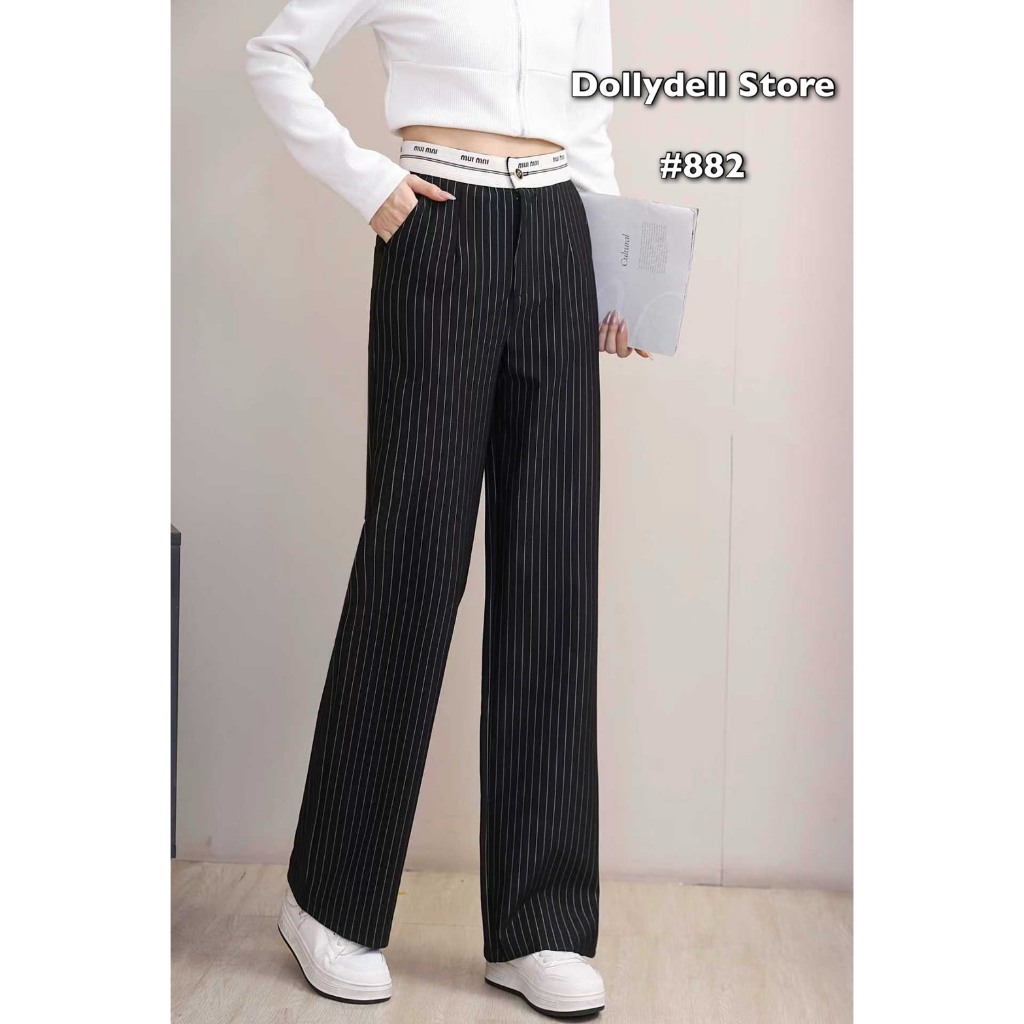 กางเกงทรงตรงลายทางผู้หญิง รุ่น#882 มีกระดุม ซิปด้านหน้า เนื้อผ้าคุณภาพดีใส่สบายทรงสวย