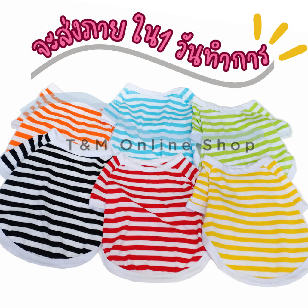 เสื้อสัตว์เลี้ยง เสื้อลายขวาง สุนัขแมว สีสันสดใส มี6สี ผ้าดี รีวิวแน่น สต๊อกพร้อมส่งจ้า TS-001