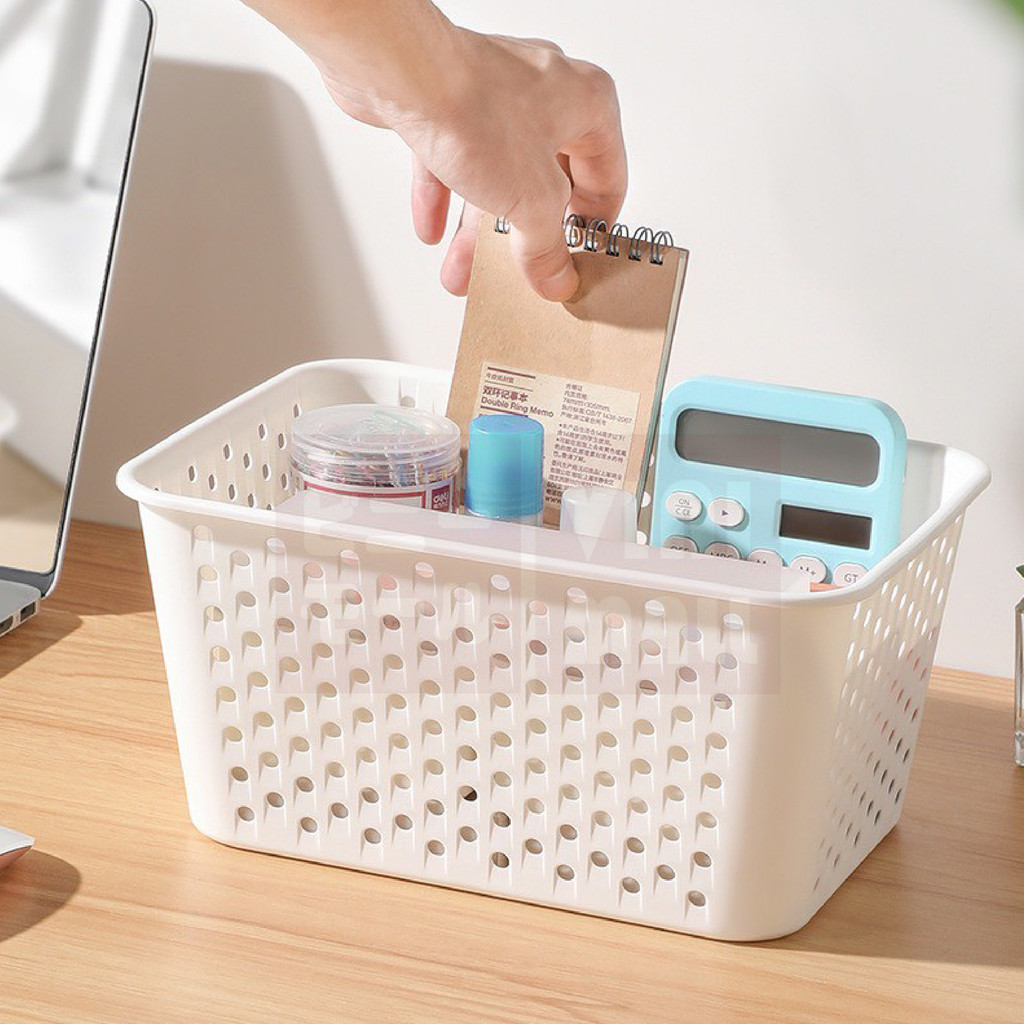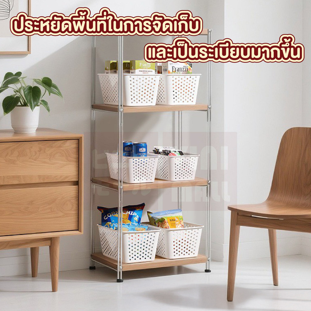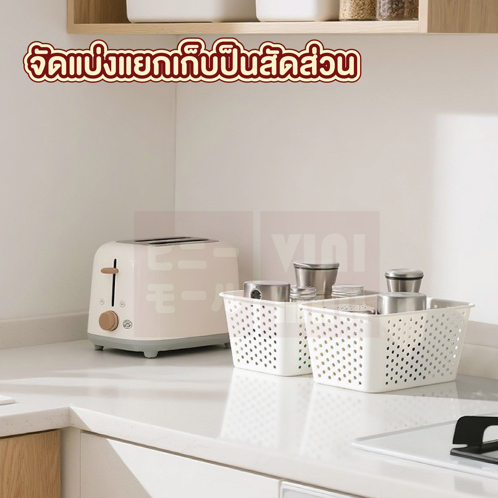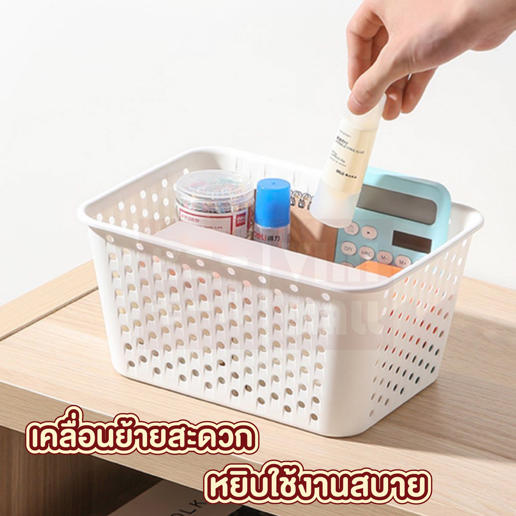 【VINIMALL คุณภาพดี】ตะกร้าใส่ของพลาสติก ดีไซน์โปร่ง แข็งแรง น้ำหนักเบา จัดเก็บอเนกประสงค์ CTN5013 GW S27
