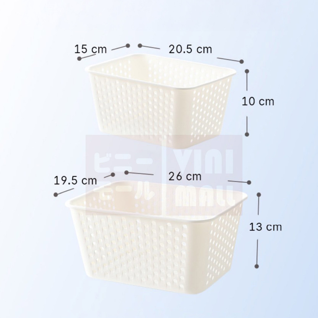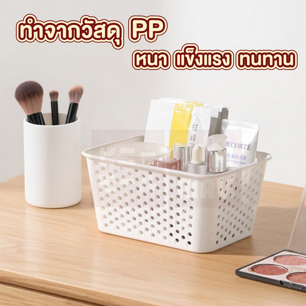 รายละเอียดสินค้า วัสดุ : พลาสติก PP ขนาด : 2 ขนาด เล็ก : 20.5L x 15W x 10H ซม. ใหญ่ : 26L x 19.5W x 13H ซม. สี : ขาว แพ็ค : 1 ชิ้น ตัวเลือก : 2 ตัวเลือก CTN5013-ตะกร้าเล็ก CTN5013-ตะกร้าใหญ่ คุณสมบัติ 1.ดีไซน์โปร่ง ระบายอากาศได้ดี ป้องกันความอับชื้น เห