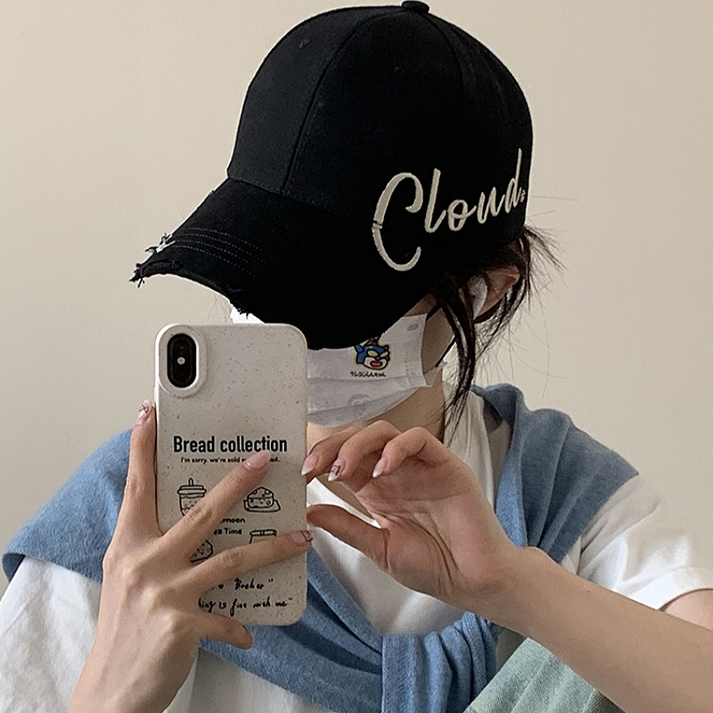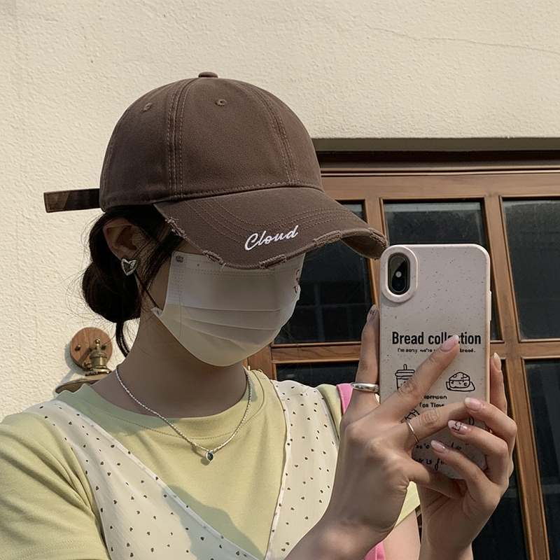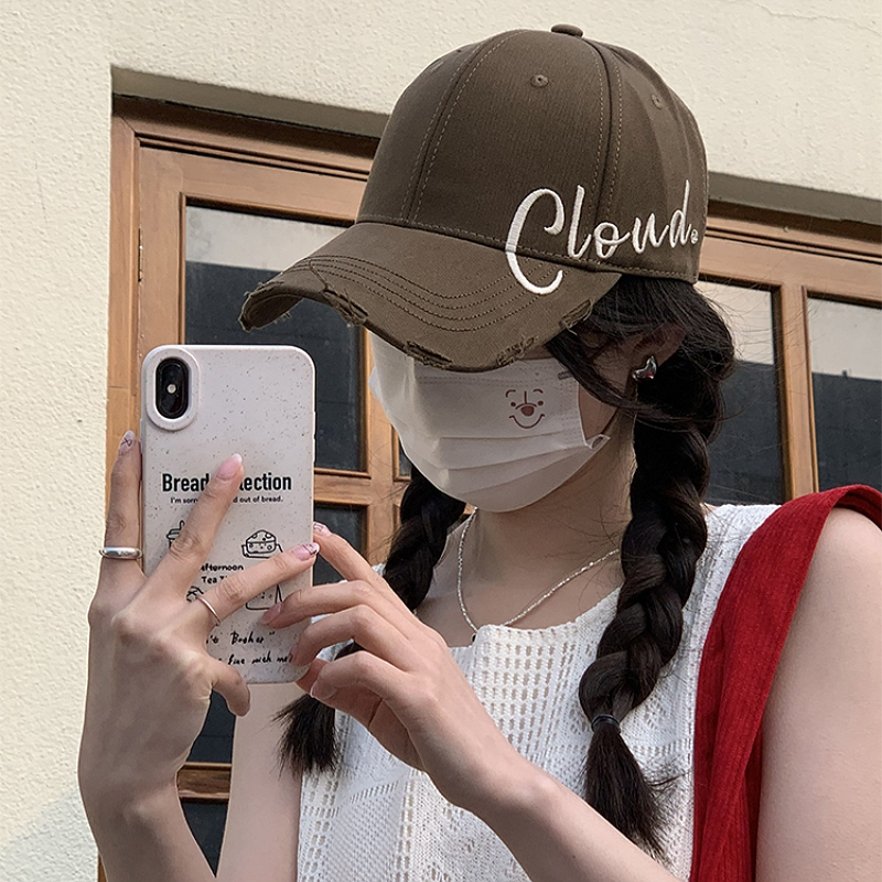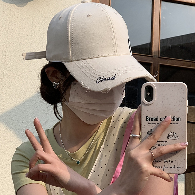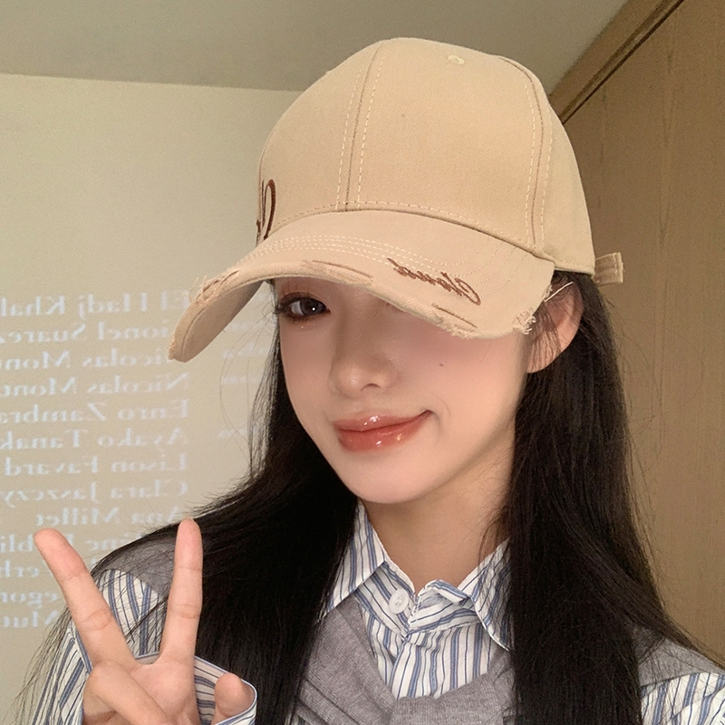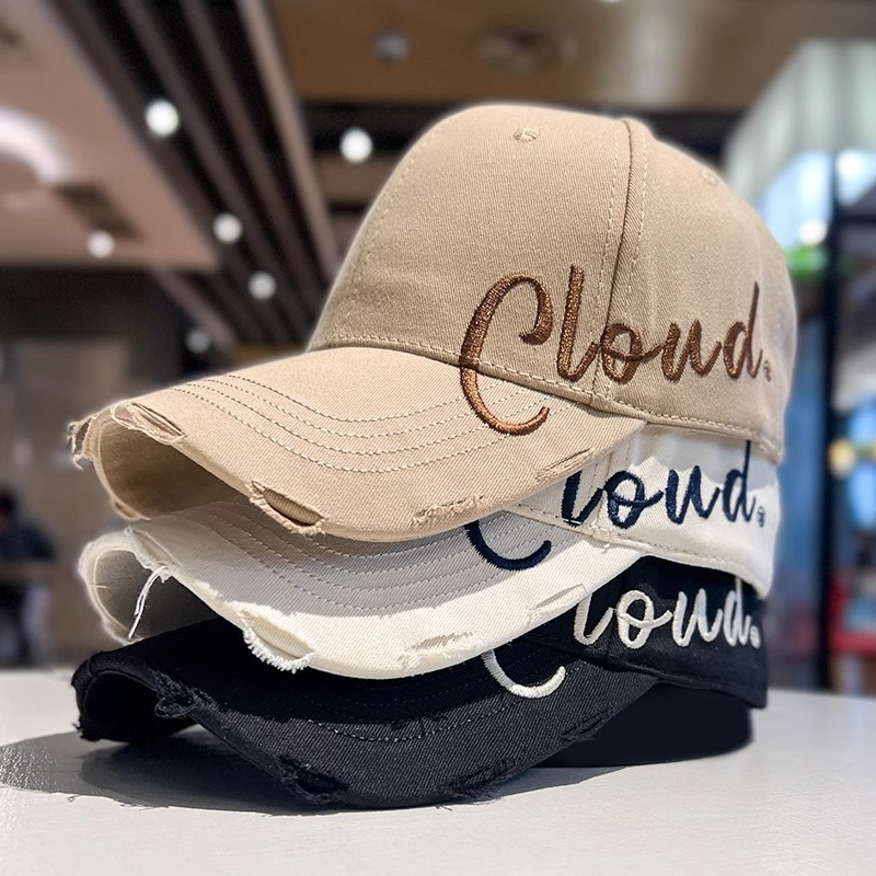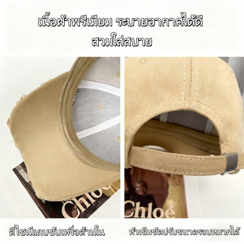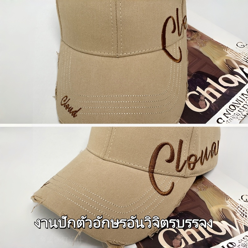 Miss_J พร้อมส่งจากกทม?หมวกเบสบอลสไตล์เกาหลีพร้อมโลโก้และตัวอักษรปักด้านข้าง ดีไซน์ขาด เหมาะสำหรับสไตล์สตรีท