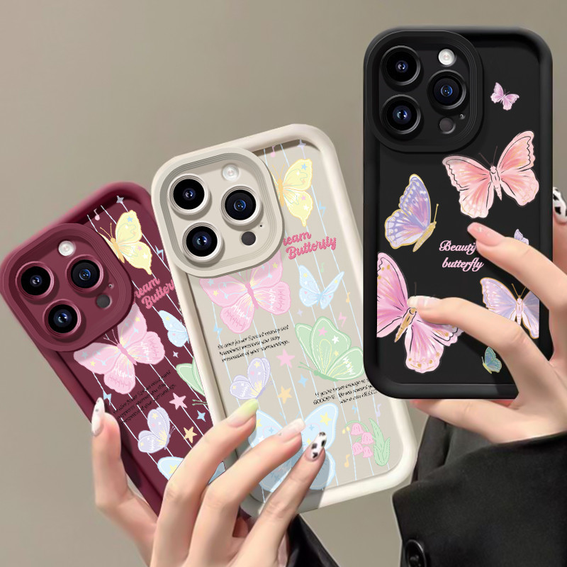 เคสสำหรับ Realme C11 2020 เคสโทรศัพท์ผีเสื้อสามสีซิลิโคนกันกระแทก
