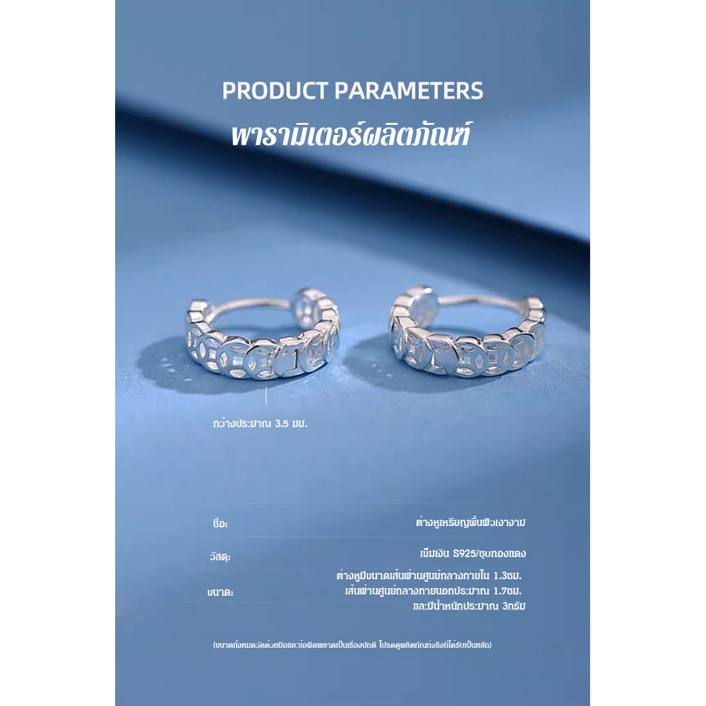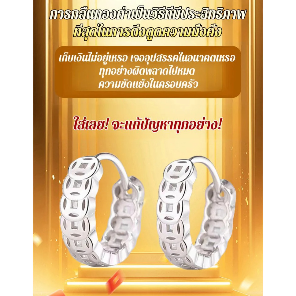 ?เงินแท้ 99.9%? ต่างหูเสริมดวง/ 24K ต่างหูห่วงเล็ก/ต่างหูก้านเงินชุบทองเหลือง /พลังแห่งโชคดี เรียบหรู ใส่ได้ทุกวั ดีไซน์Minimalistเข้ากับทุกโอกาส ช่วยเรื่องการเงินและความรัก