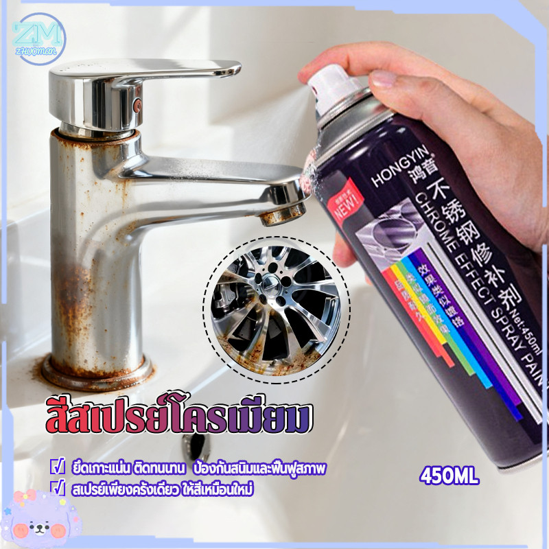 สีสเปรย์โครเมี่ยม 450ml สีพ่นล้อแม็ก สีพ่นรถยนต์ สีโครเมี่ยมแท้ กระจกเงา ป้องกันสนิมได้ยาว แห้งเร็วและใช้งานง่าย