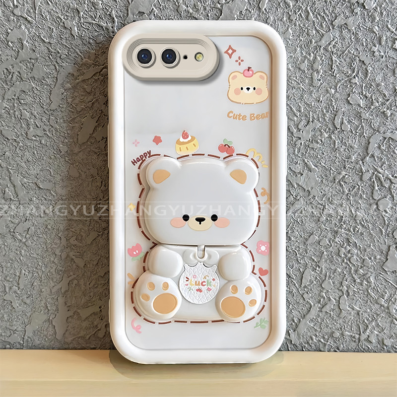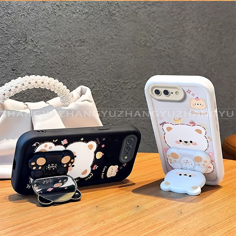 เหมาะสําหรับ iphone 6 6S 7 8 PLUS เคสโทรศัพท์ใหม่น่ารักหมีกระจกขาตั้ง lprotective พร้อมความงามปกอ่อน JT07