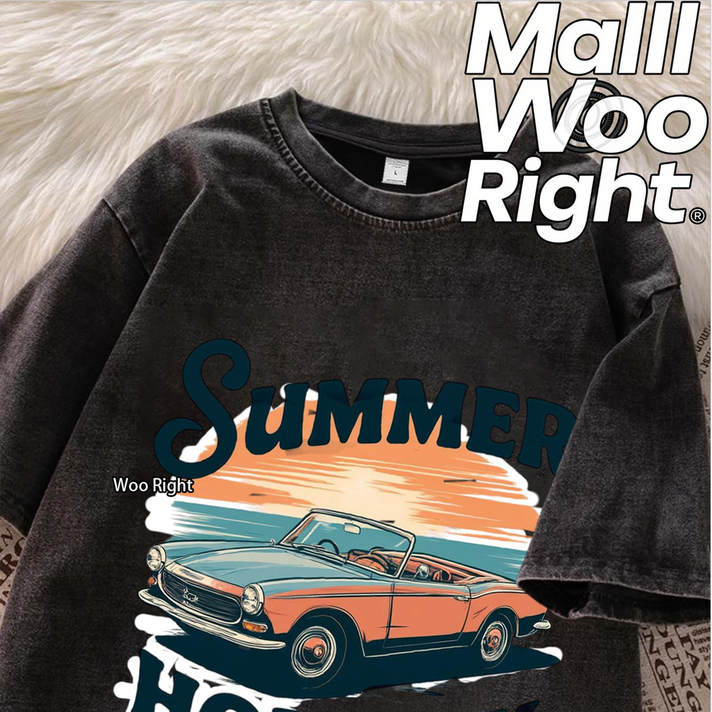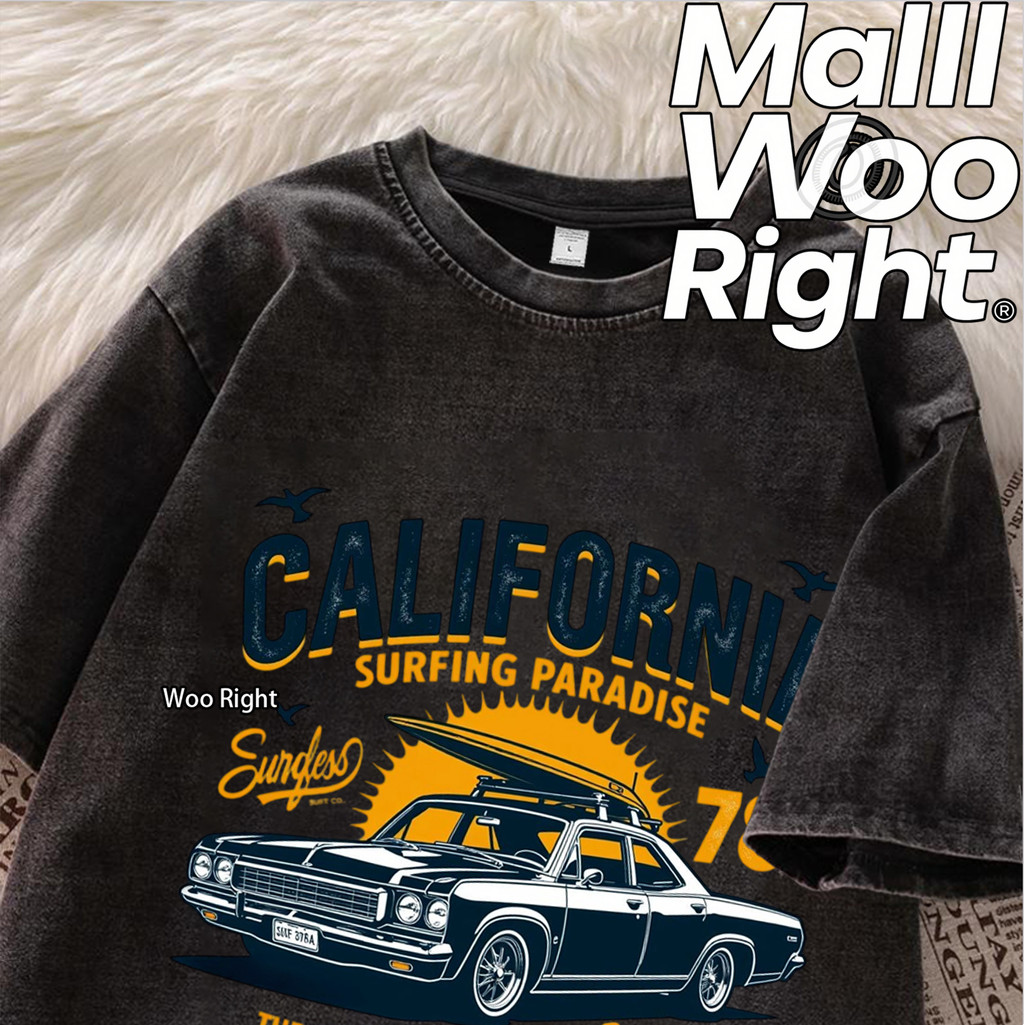 จัดส่งตลอด 24 ชั่วโมง Woo Right เสื้อฟอก เสื้อยืดชาย Oversize ผ้านุ่ม ไม่ยับ สวมใส่ง่าย