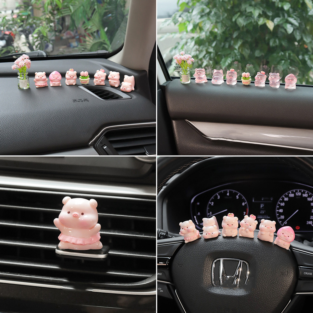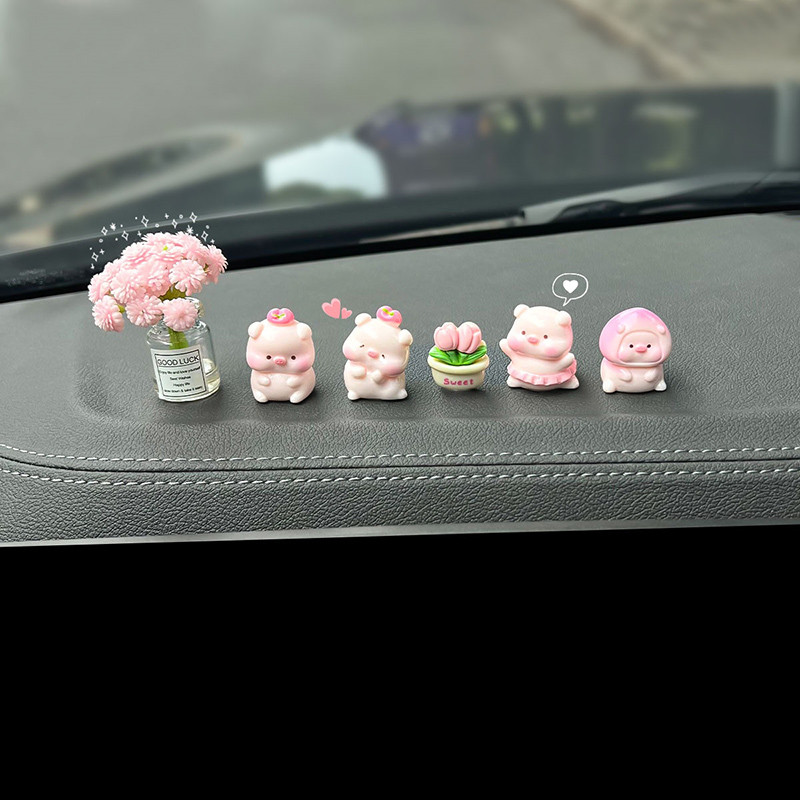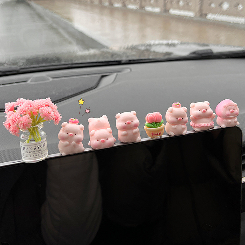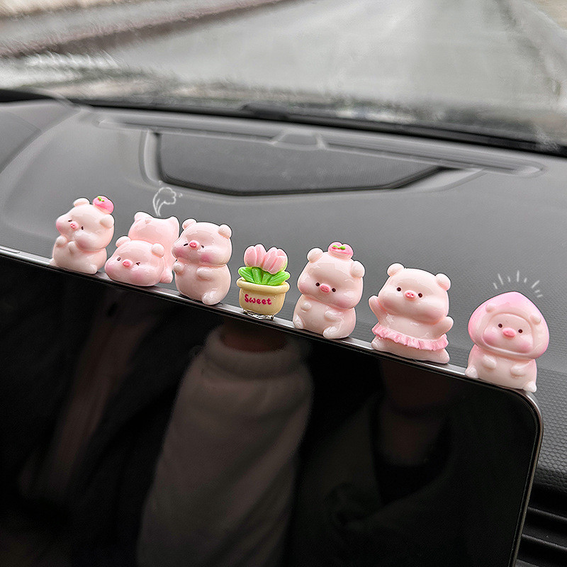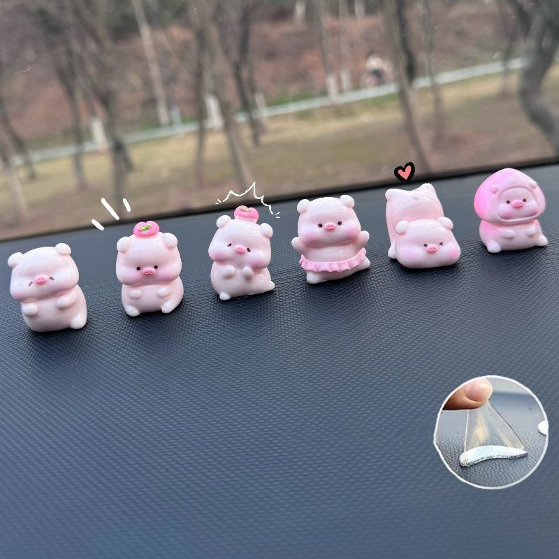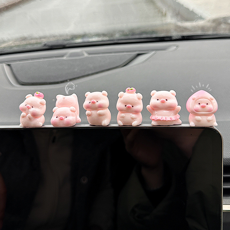 6ชิ้น/เซ็ตหมูพีชน่ารักเครื่องประดับรถการ์ตูนหมูเรซิ่นตกแต่งคอนโซลกลางรถอัตโนมัติภายในแดชบอร์ดอุปกรณ์เสริม