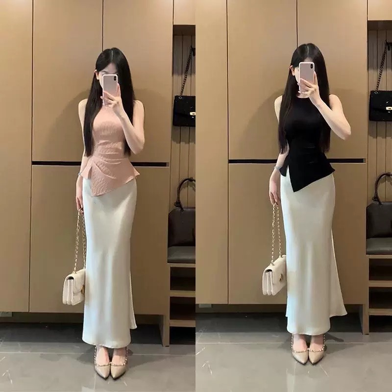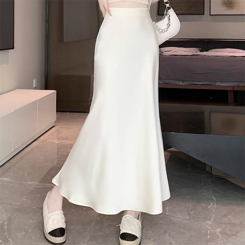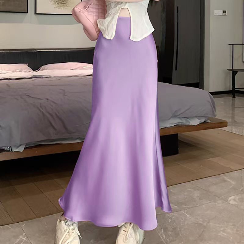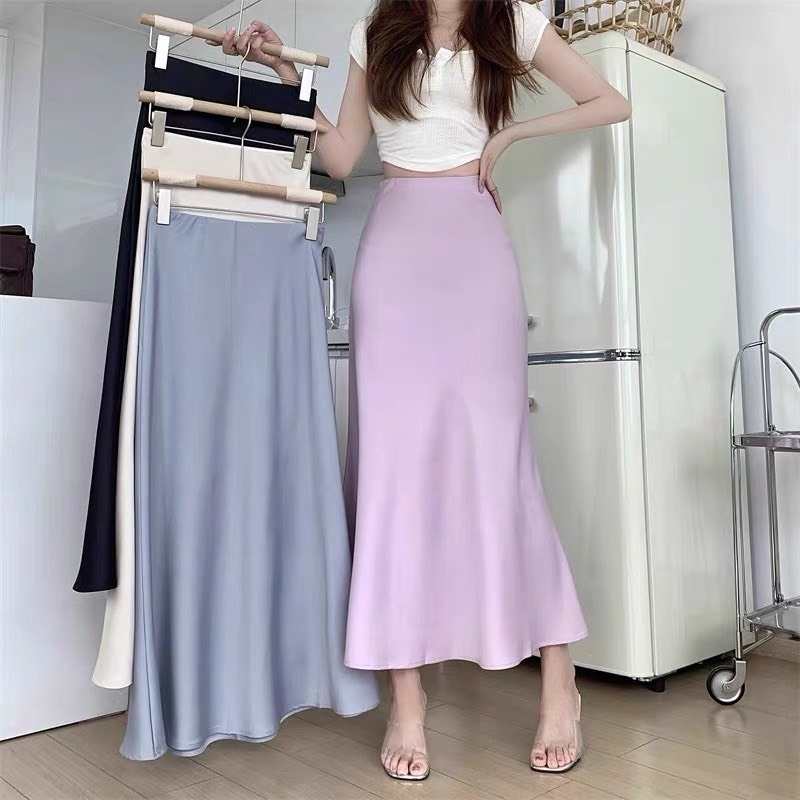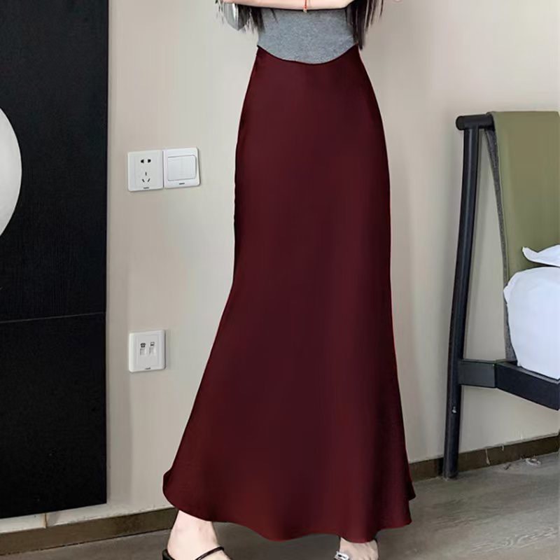 SK-SATIN กระโปรงซาติน กระโปรงยาว สำหรับผู้หญิง ซิปด้านหลัง ผ้าไม่ยืด S-XL สินค้าพร้อมส่ง