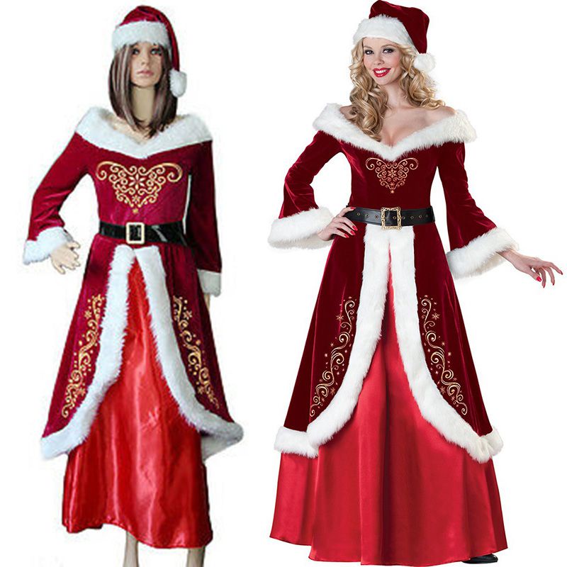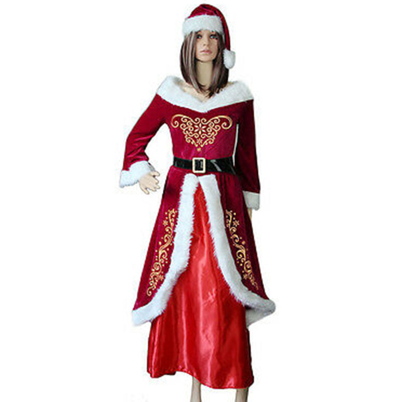 ชุดคริสต์มาสชุดซานตาคลอสผู้ใหญ่ผู้หญิงเลดี้คริสต์มาสวันหยุดปาร์ตี้คอสเพลย์