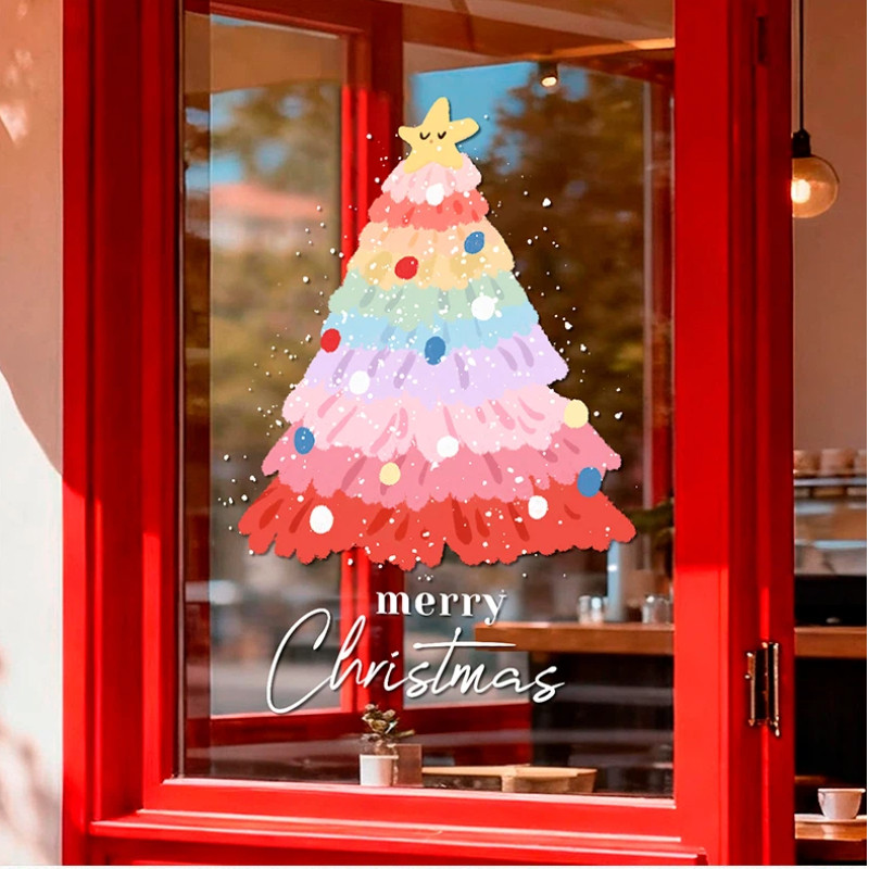 สติกเกอร์ต้นคริสต์มาส สำหรับตกแต่งหน้าต่างและประตู สร้างบรรยากาศอบอุ่นให้บ้านของคุณ