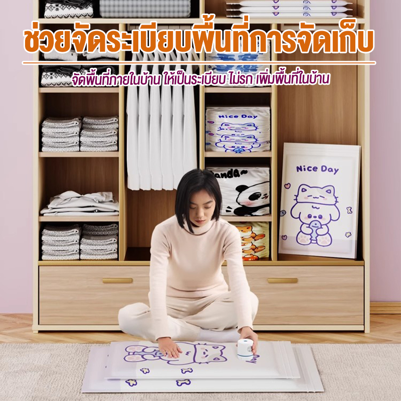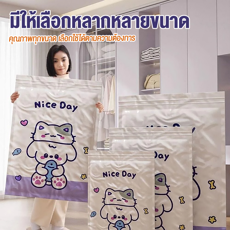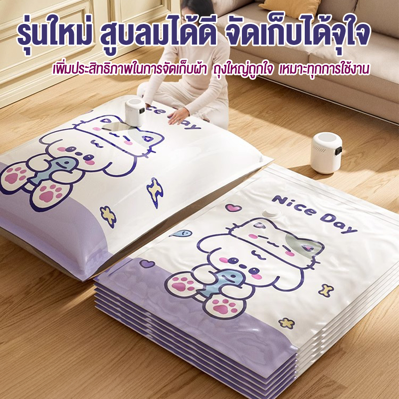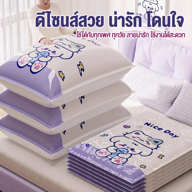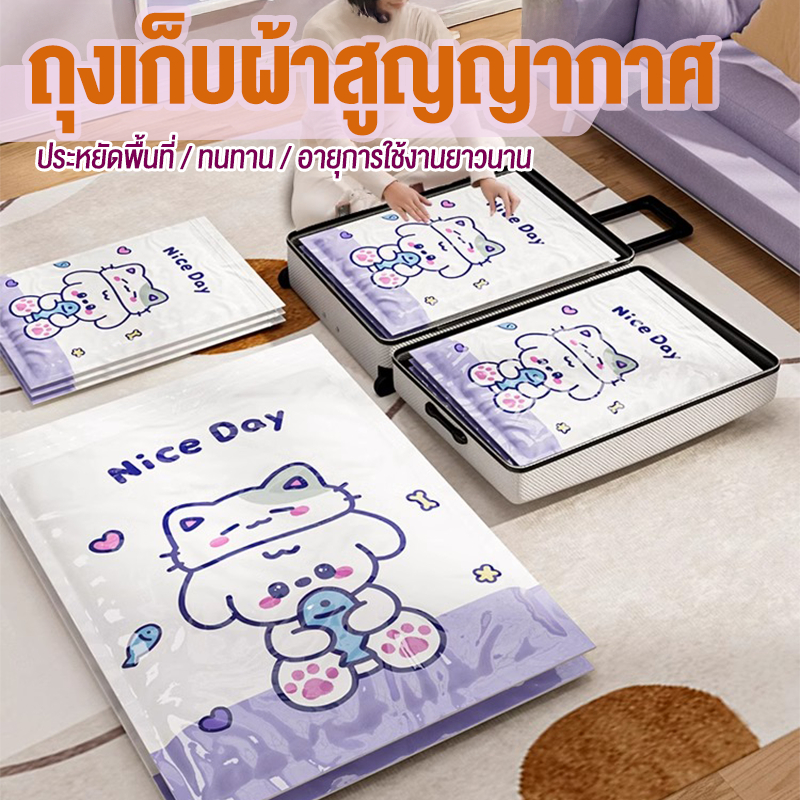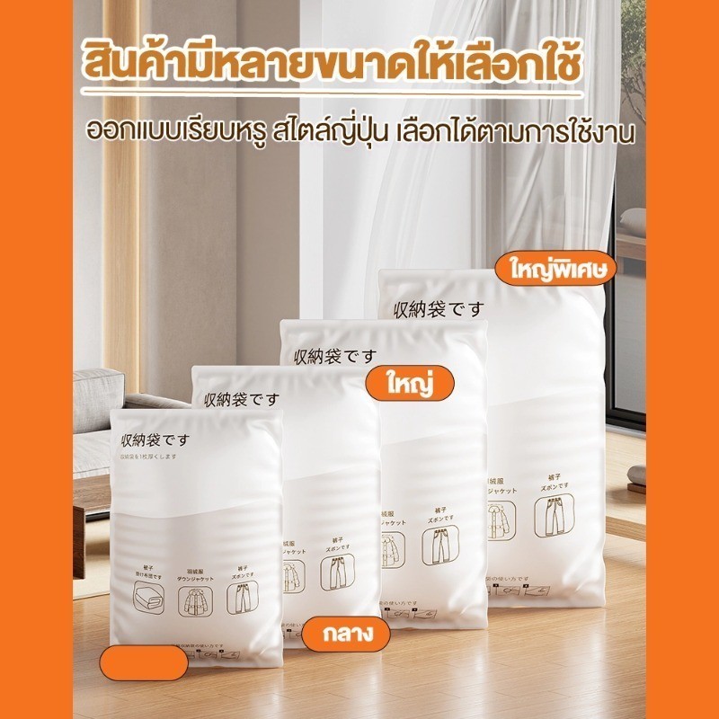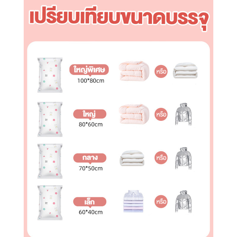 【 3 แถม 4】ถุงสูญญากาศ เก็บเสื้อผ้าผ้าห่มผ้านวมจัดเก็บของกระชับพื้นที่แพ็คของเดินทางถุงใส่เสื้อผ้าพกพา ราคาต่อชิ้น(แบบใส)