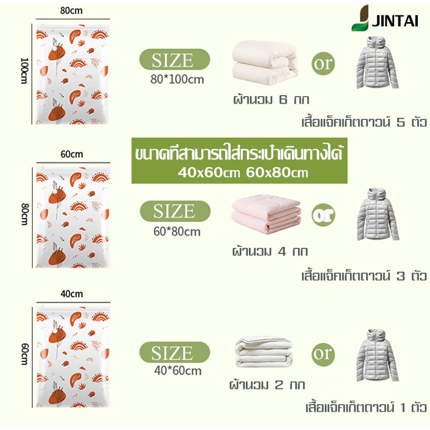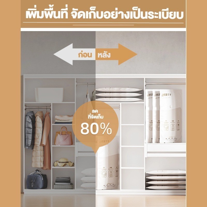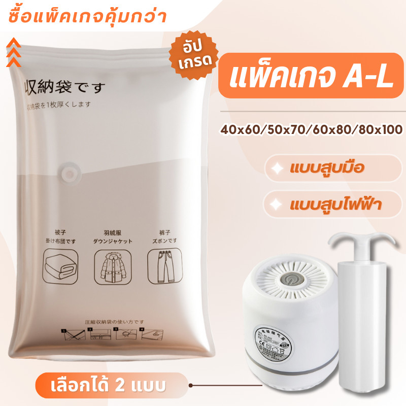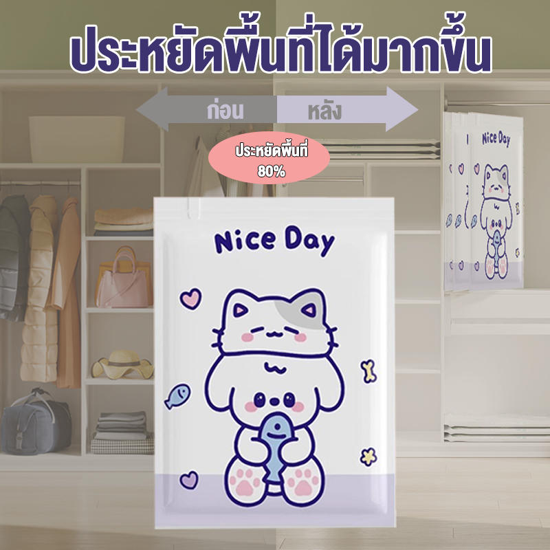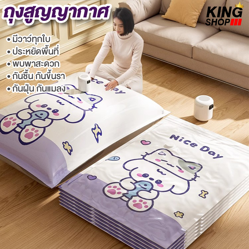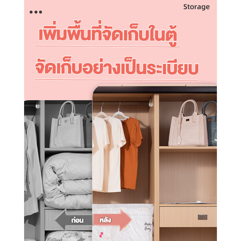 【 3 แถม 4】ถุงสูญญากาศ เก็บเสื้อผ้าผ้าห่มผ้านวมจัดเก็บของกระชับพื้นที่แพ็คของเดินทางถุงใส่เสื้อผ้าพกพา ราคาต่อชิ้น(แบบใส)