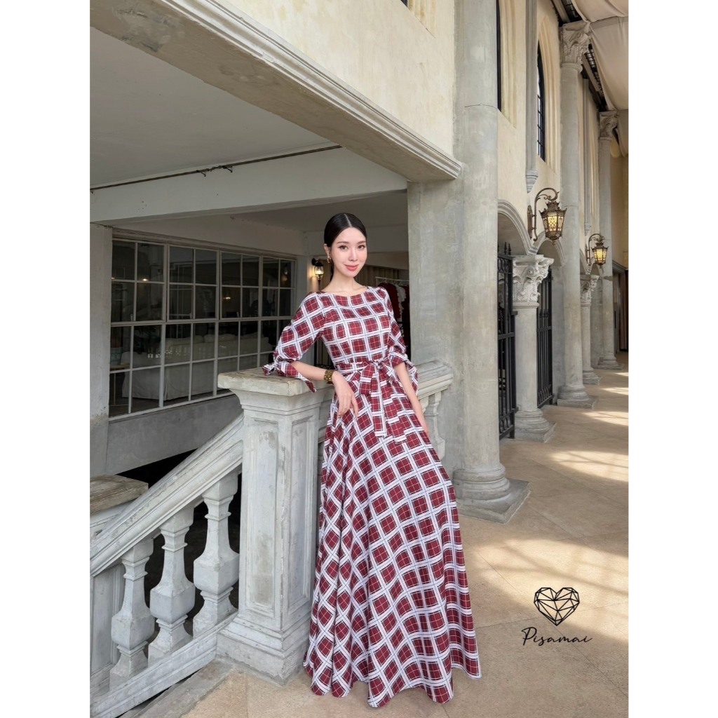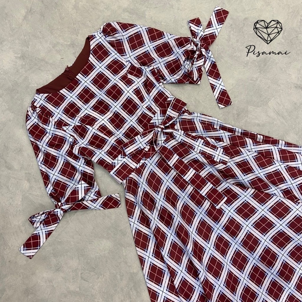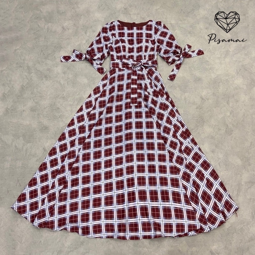 “เช็คสินค้าก่อนสั่งซื้อ สั่งแล้วห้ามยกเลิกน๊าค๊า”PISAMAIเดรสแขน5ส่วนลายสก็อตความกระโปรงเลเยอร์ฟูฟ่องมาพร้อมเชือก พร้อมซั