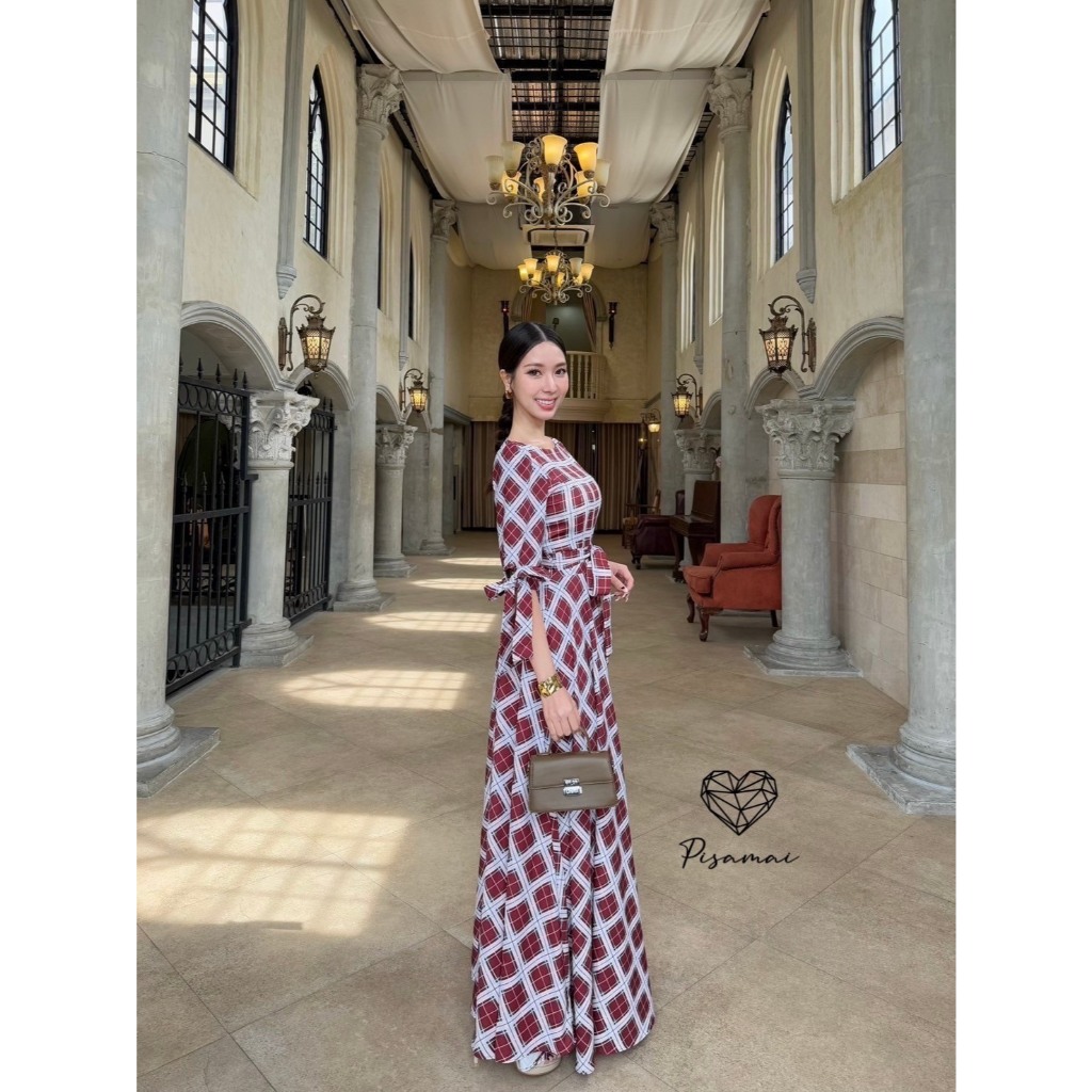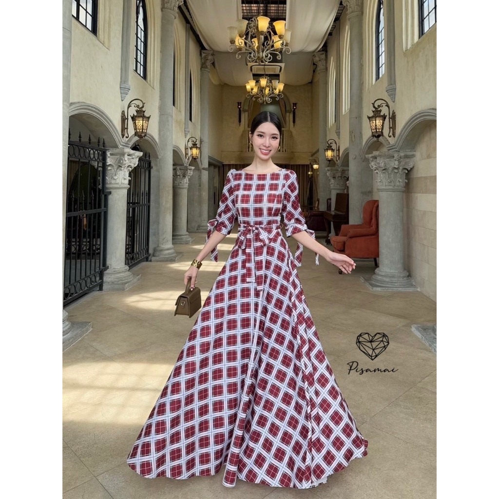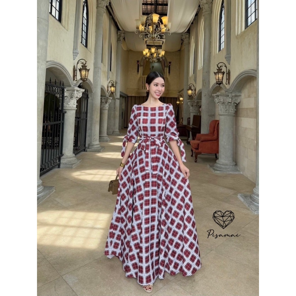 “เช็คสินค้าก่อนสั่งซื้อ สั่งแล้วห้ามยกเลิกน๊าค๊า”PISAMAIเดรสแขน5ส่วนลายสก็อตความกระโปรงเลเยอร์ฟูฟ่องมาพร้อมเชือก พร้อมซั