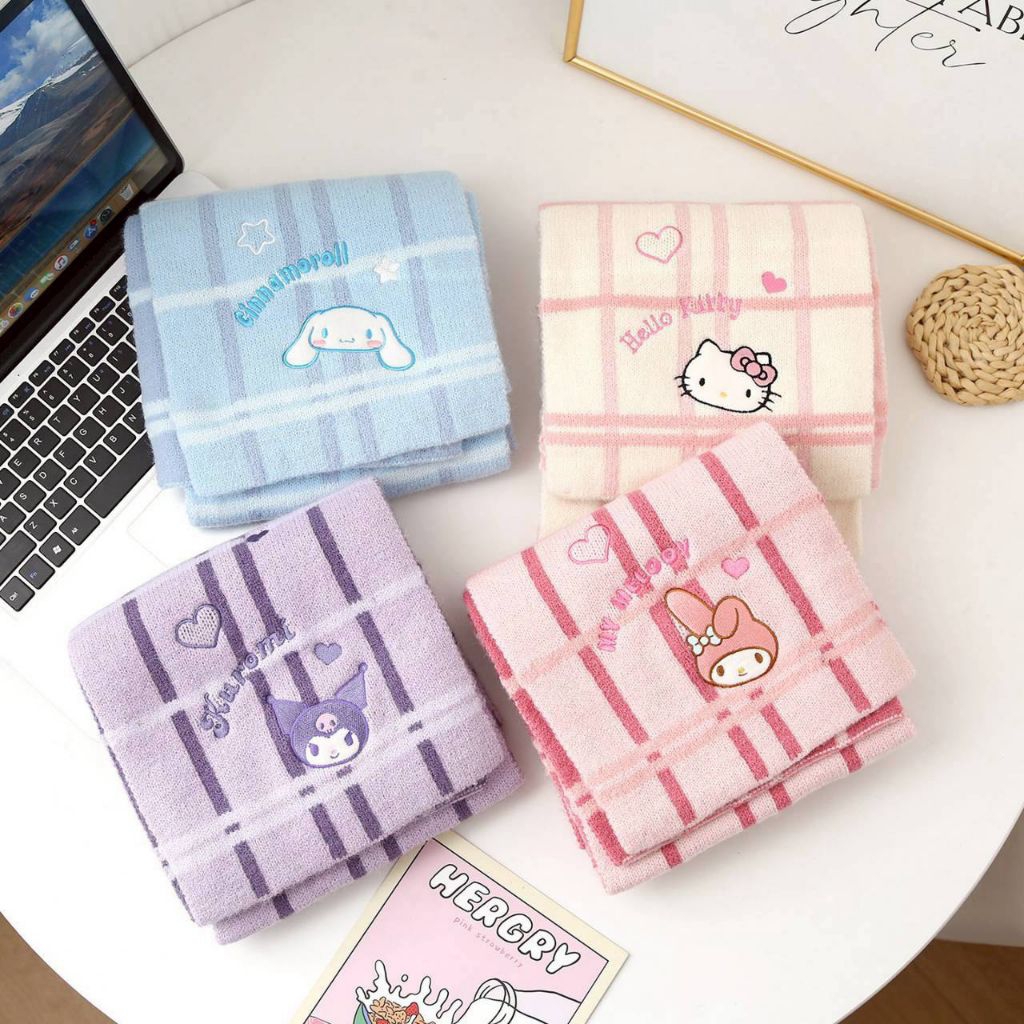 ผ้าพันคอถัก Sanrio สินค้าลิขสิทธิ์แท้??? ผ้าเป็นงานถักแบบประณีต ตัวการ์ตูนเป็นงานปัก ขนาด 166*22cm มี 4 ลาย ราคา 379 บาท?