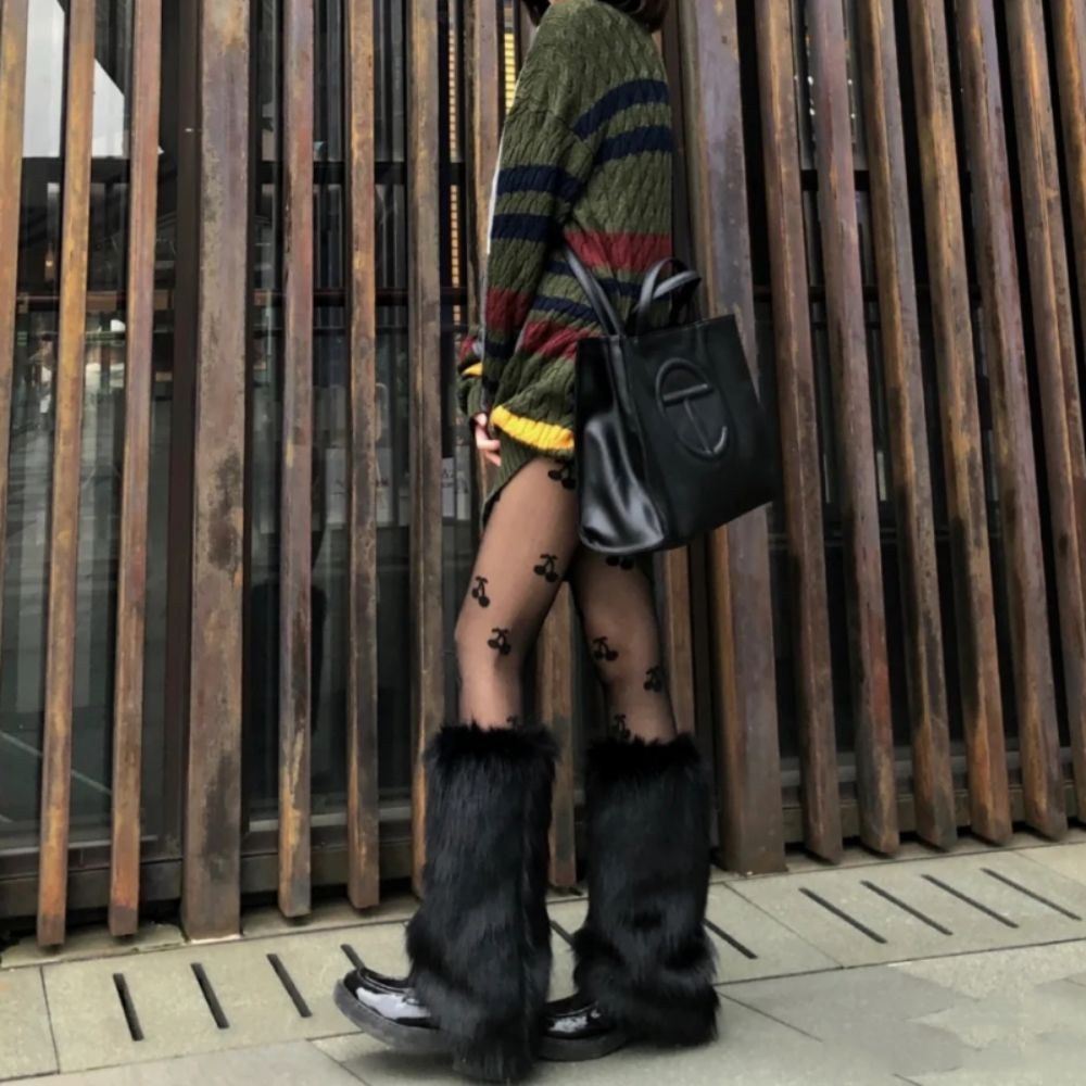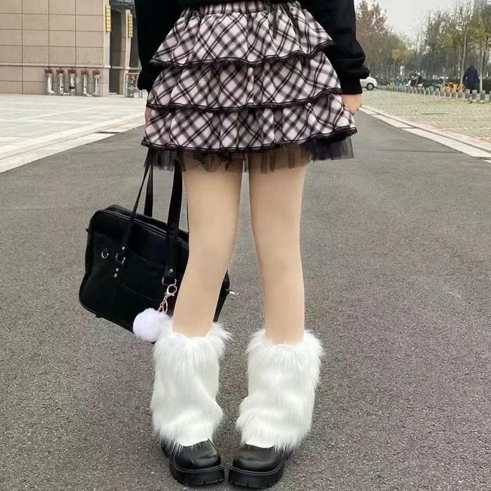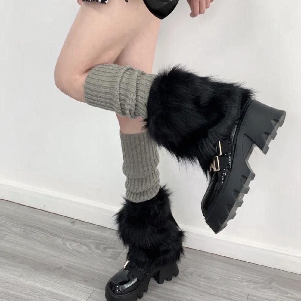 UNUF ขาอุ่นขนสังเคราะห์, รองเท้า Lolita สไตล์ญี่ปุ่น พร้อมถุงเท้าลายยาว ให้ความอบอุ่มและนุ่มนวล