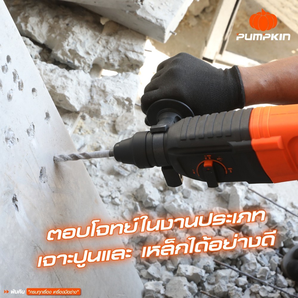 PUMPKIN สว่านโรตารี่ 3 ระบบ 26 mm. 800 วัตต์ ใช้เจาะปูน/เหล็กสกัด สติ๊กเกอร์สีฟ้า/42185