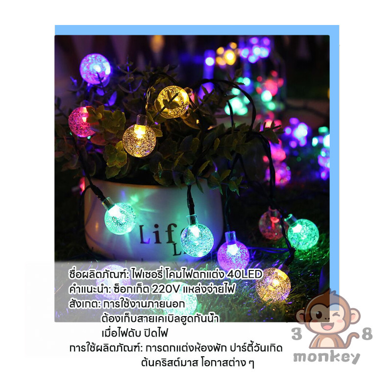 ไฟปิงปอง ไฟลูกแก้ว LED 40ดวง สตริงไฟตกแต่ง เช่น เทศกาล มหกรรม/ที่อยู่อาศัย/ปาร์ตี้