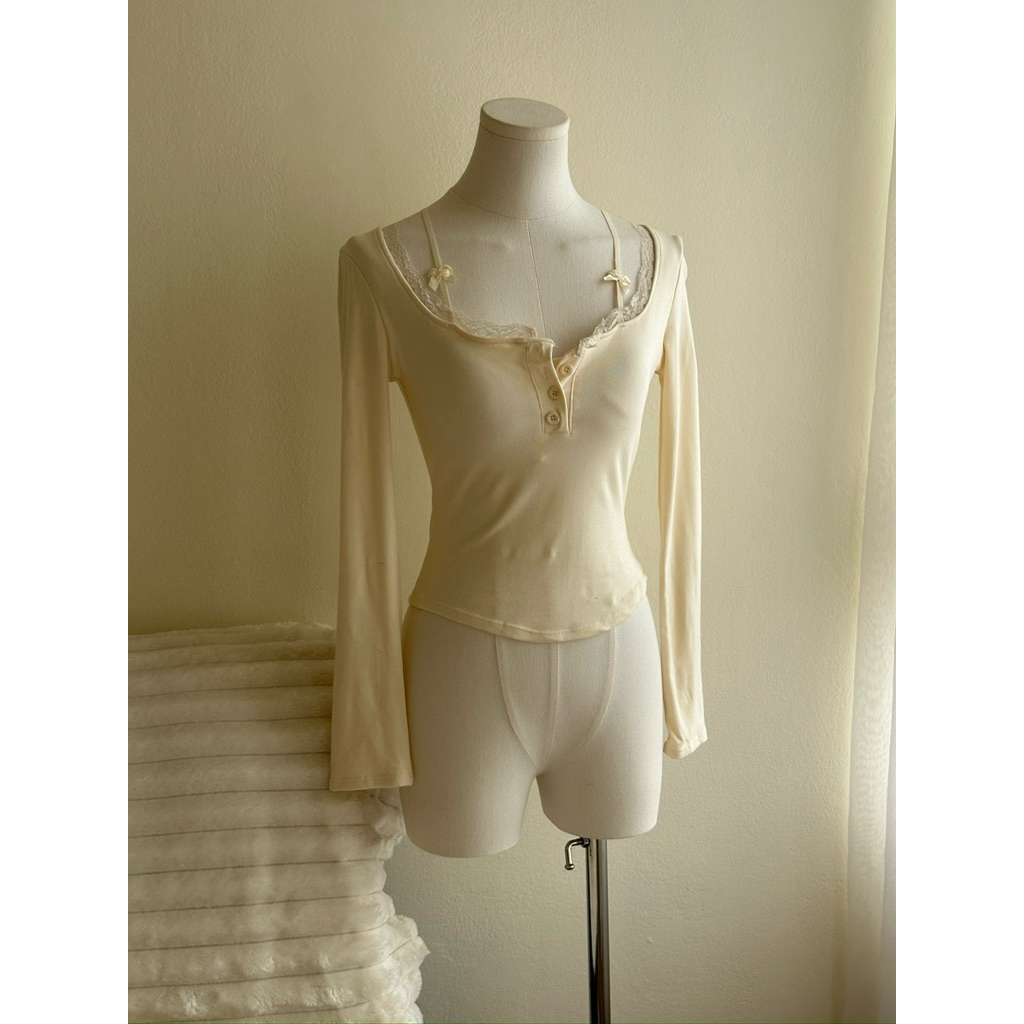 เสื้อยืดแขนยืดรัดรูปน่ารักแบบแอบแซ่บ ดีเทลมีสายด้านใน ฟองน้ำในตัว กระดุมติดได้