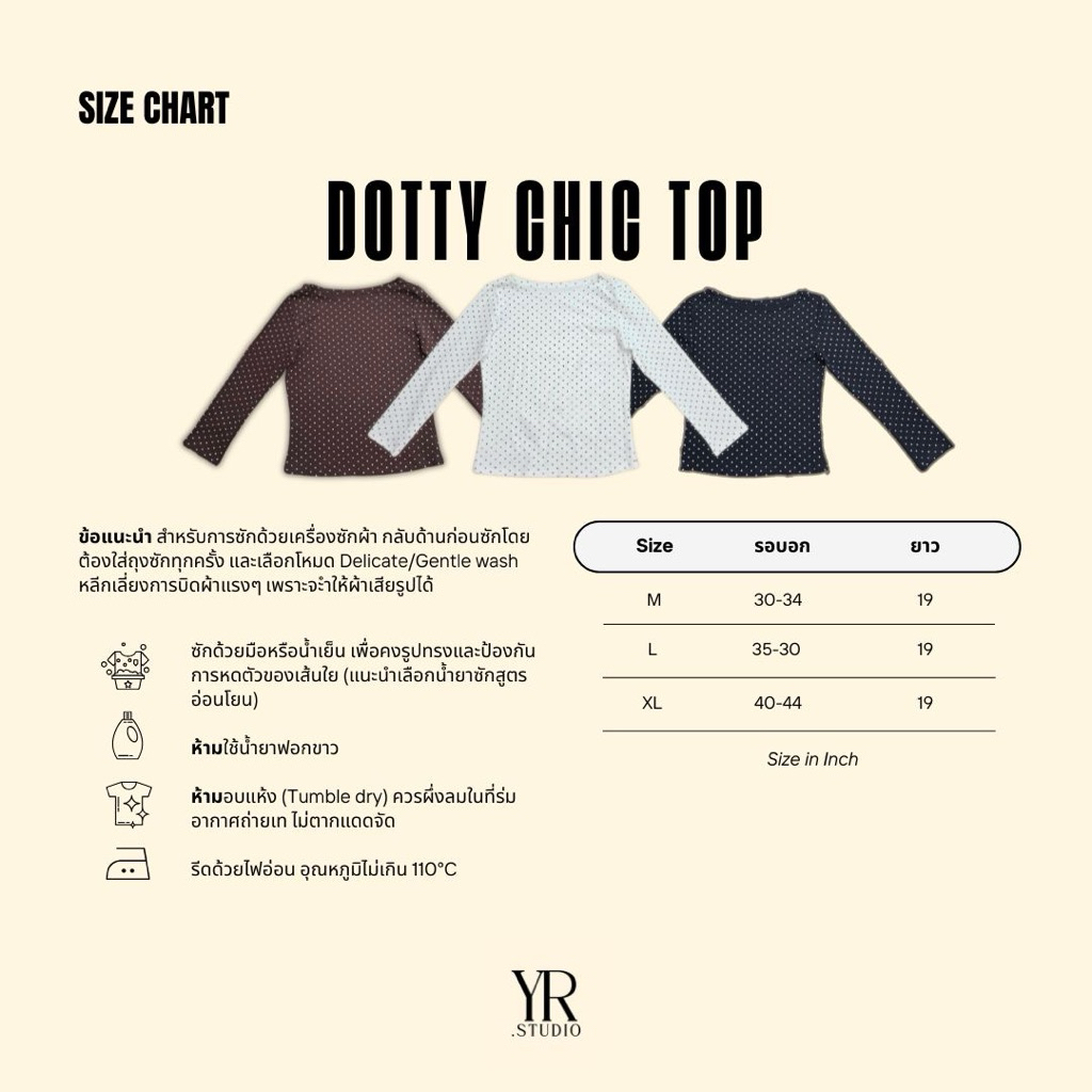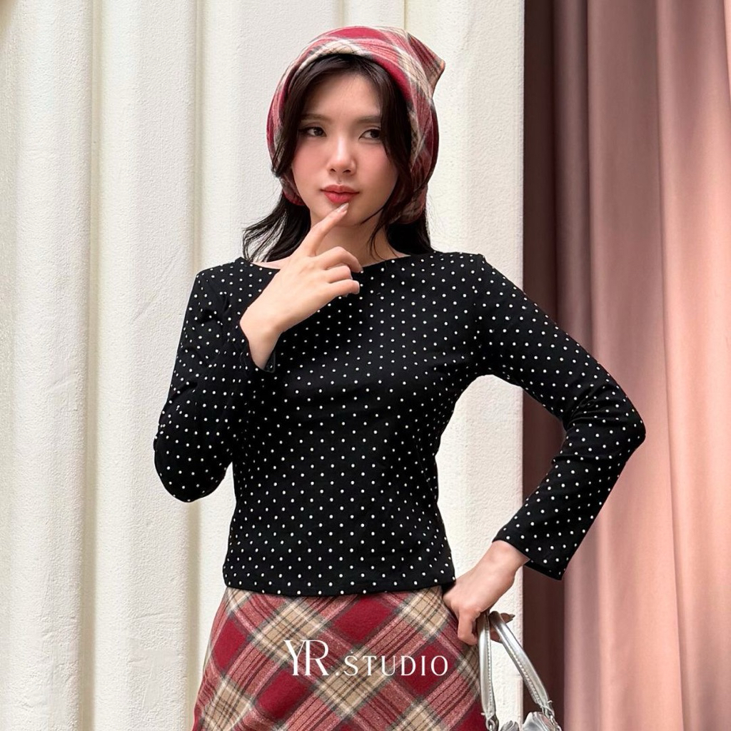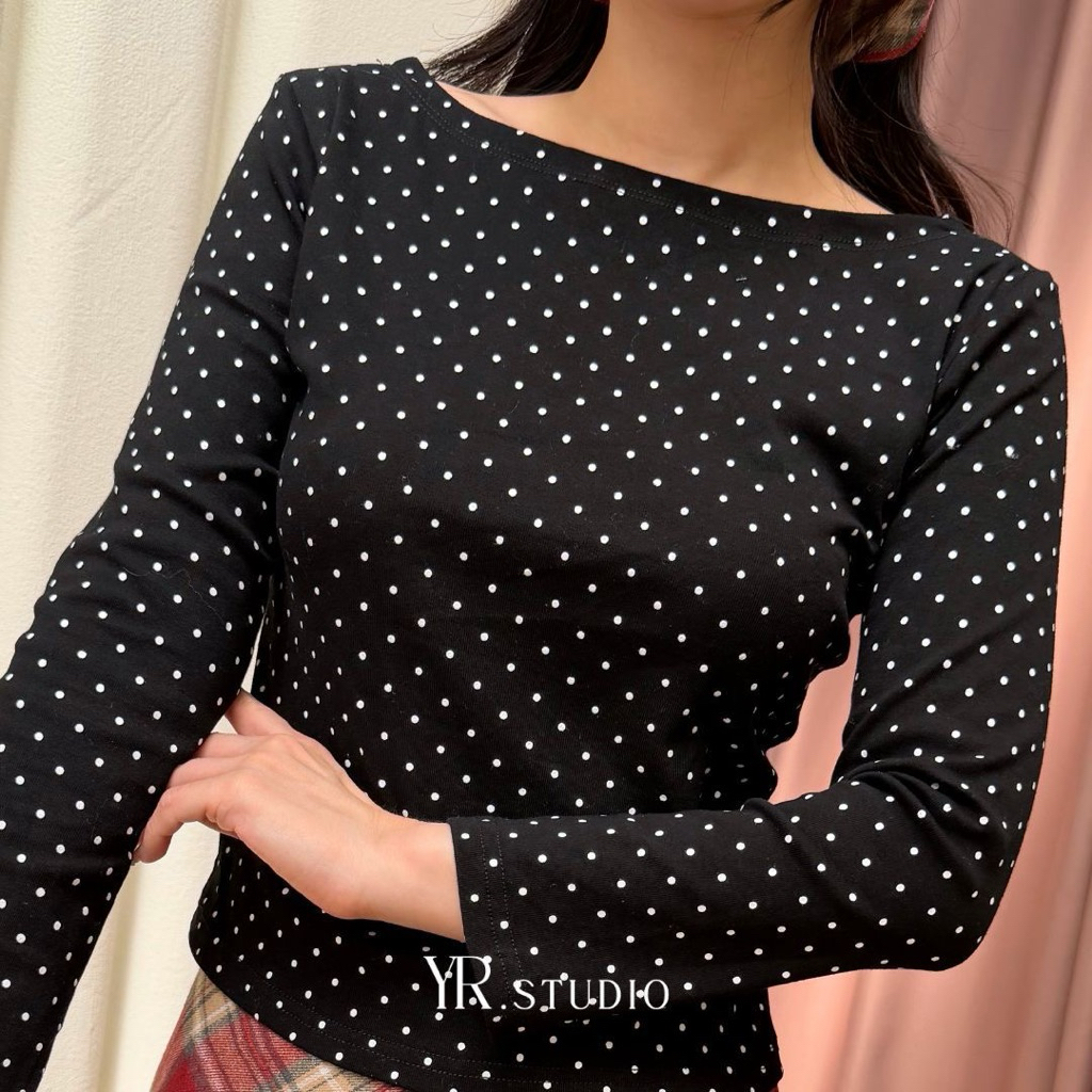 DOTTY CHIC TOP เสื้อเเขนยาวเเต่งลายจุด ผ้าคอตตอลสเปนเด็กซ์เนื้อนุ่ม ใส่ง่าย ดูผอม แมทช์กับกระโปรง/ยีนส์ได้หมด