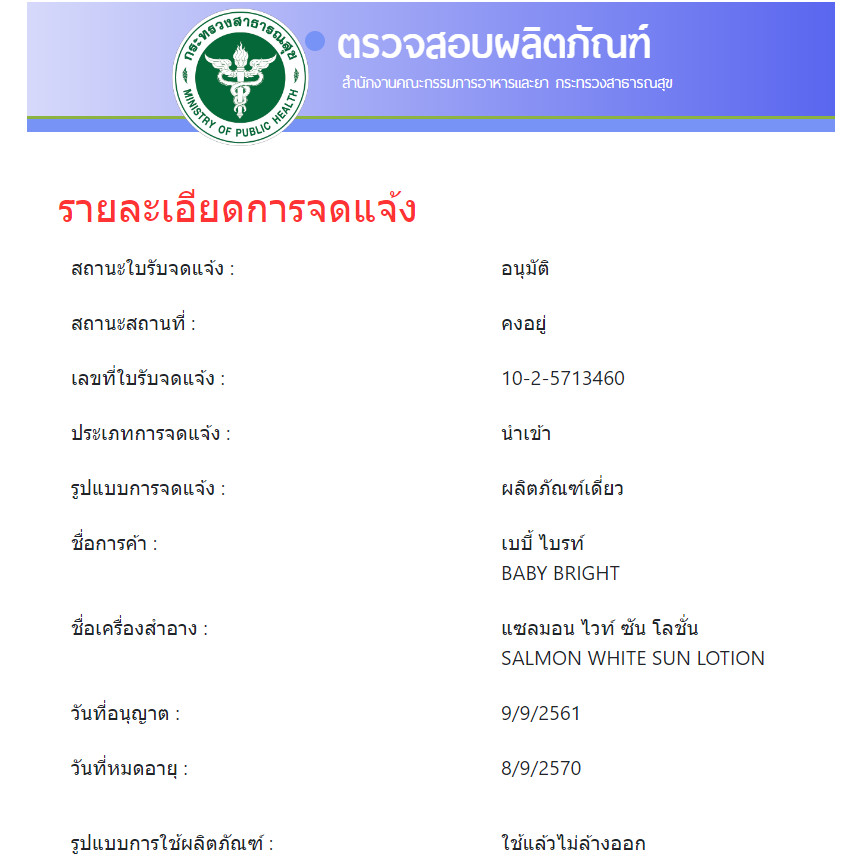 เบบี้ไบร์ท แซลมอน ไวท์ ซัน โลชั่น