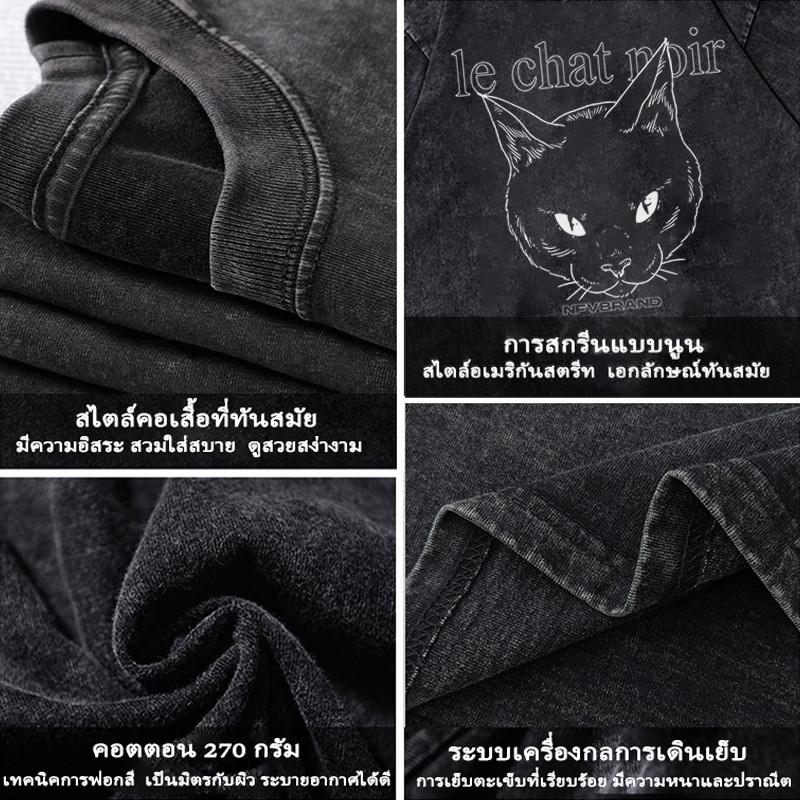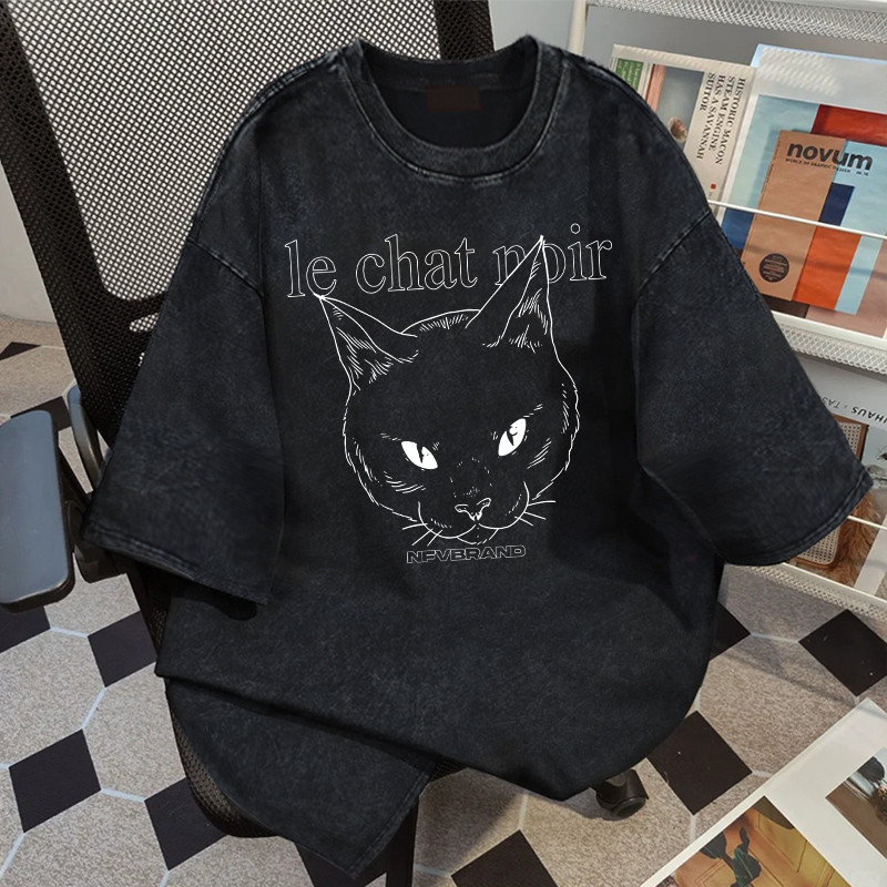 【จัดส่งตลอด 24 ชั่วโมง】LABZAA วินเทจฟอกน้ำ?เสื้อยืดแขนสั้นคอกลม ลายแมวดำ ทรงหลวม ระบายอากาศ ผ้าฝ้าย YG3727