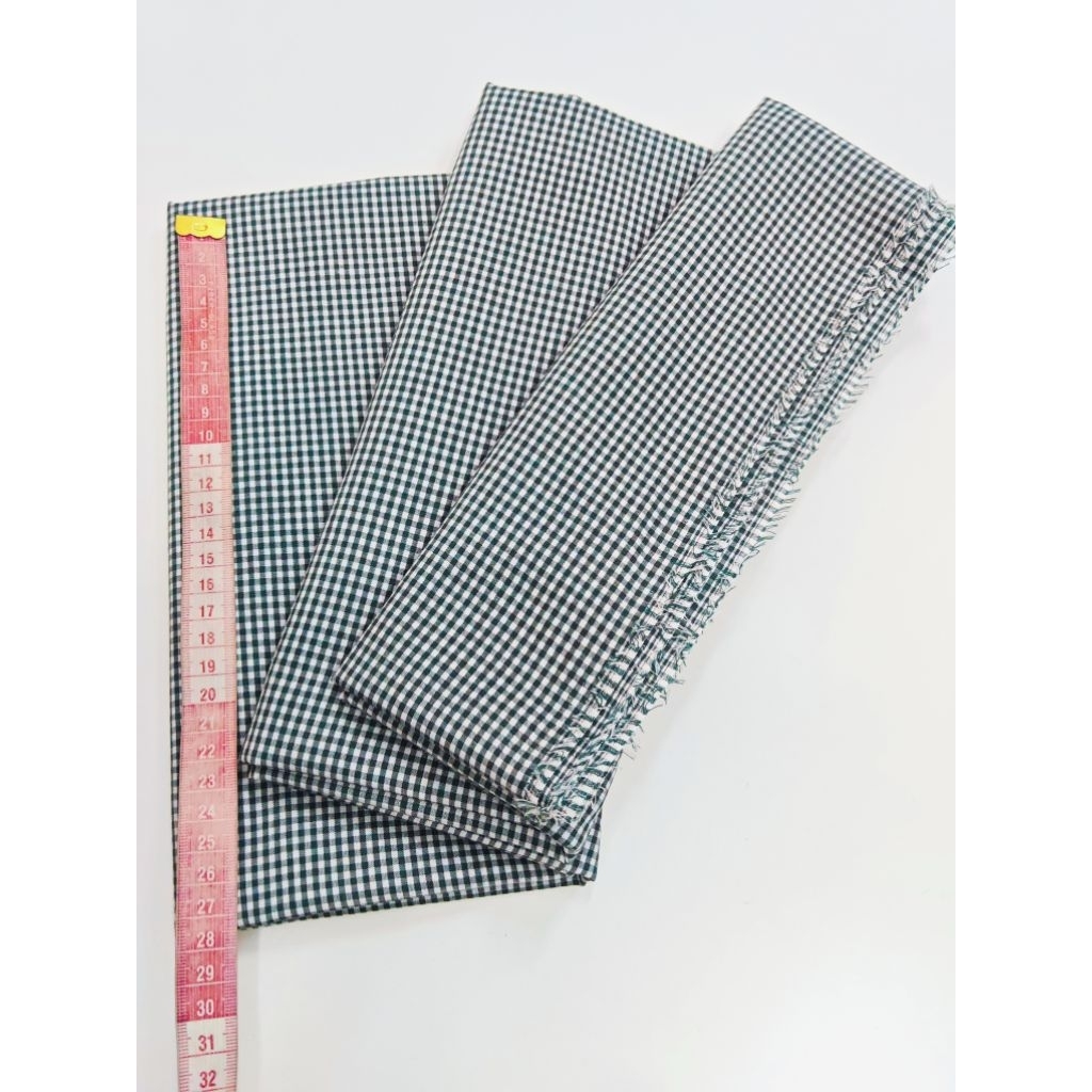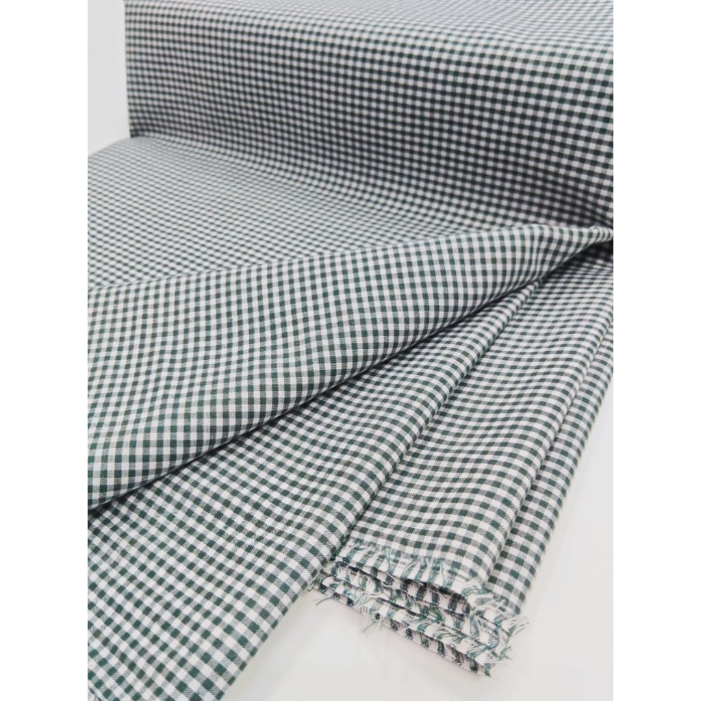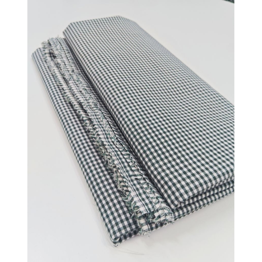 ผ้าคอตตอน ลายสก๊อต สีขาว เขียว เนื้อนิ่ม บางเบาใส่สบาย ขนาด 2×2 มิล หน้ากว้าง 114 ซม. #ผ้าเมตร #ผ้าหลา #ผ้าลายสก็อต