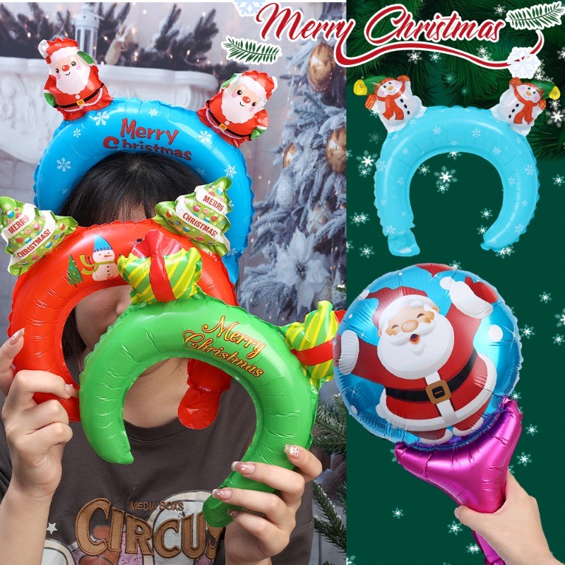 ลูกโป่งคาดศีรษะซานตาคลอสพอง – เครื่องประดับผมเขากวางฟอยล์คริสต์มาส – แท่งมือถือ Xmas Party Decor