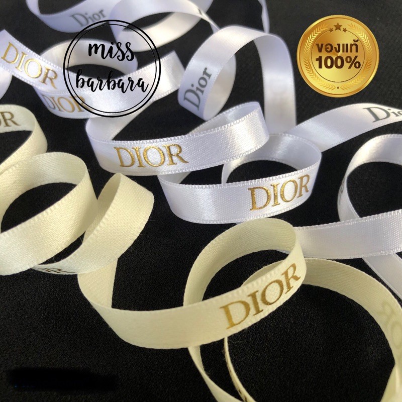 ริบบิ้น Diorสีครีม พิมพ์โลโก้สีทอง