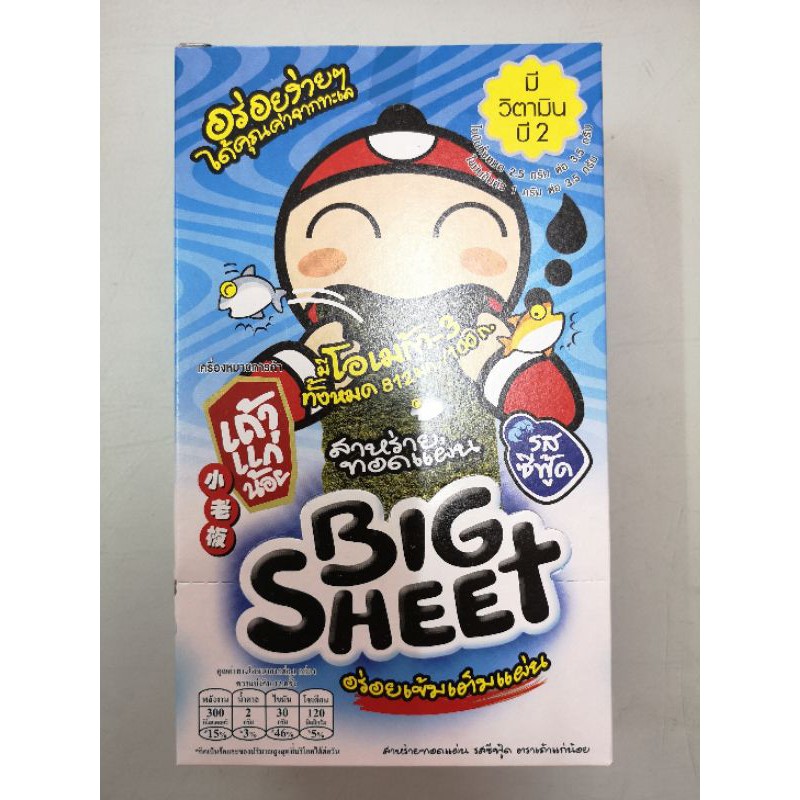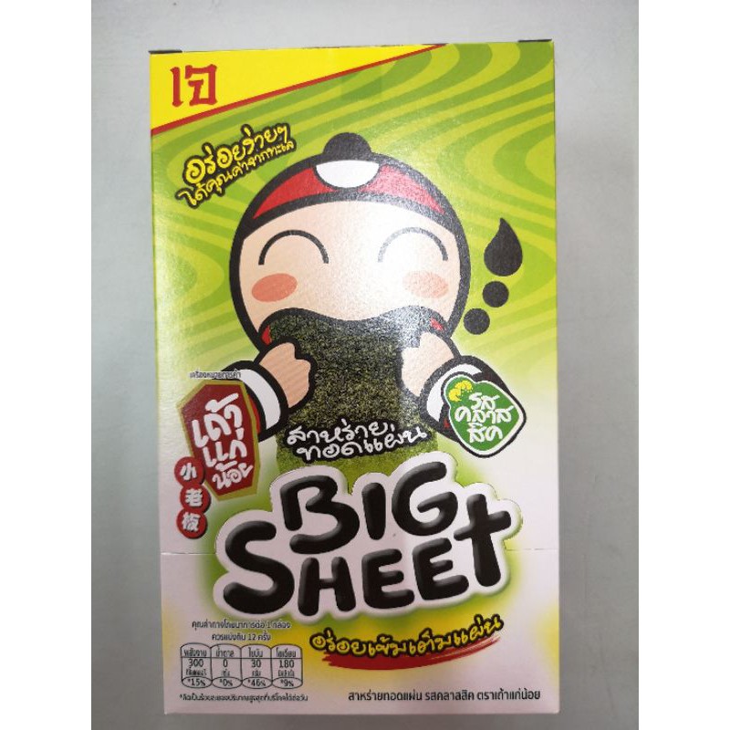 เถ้าแก่น้อย สาหร่ายทอดแผ่น บิ๊กชีส ขนาด3.5กรัม x 12ซองครับ