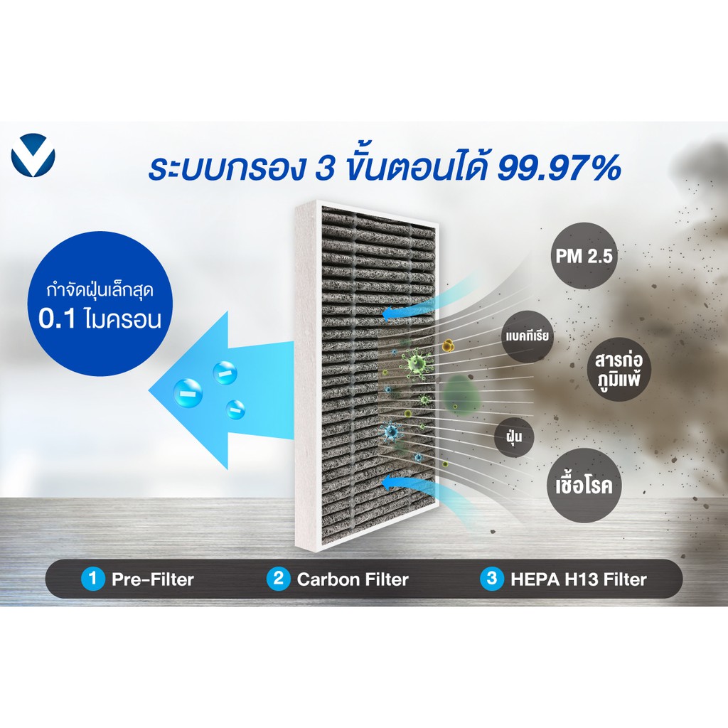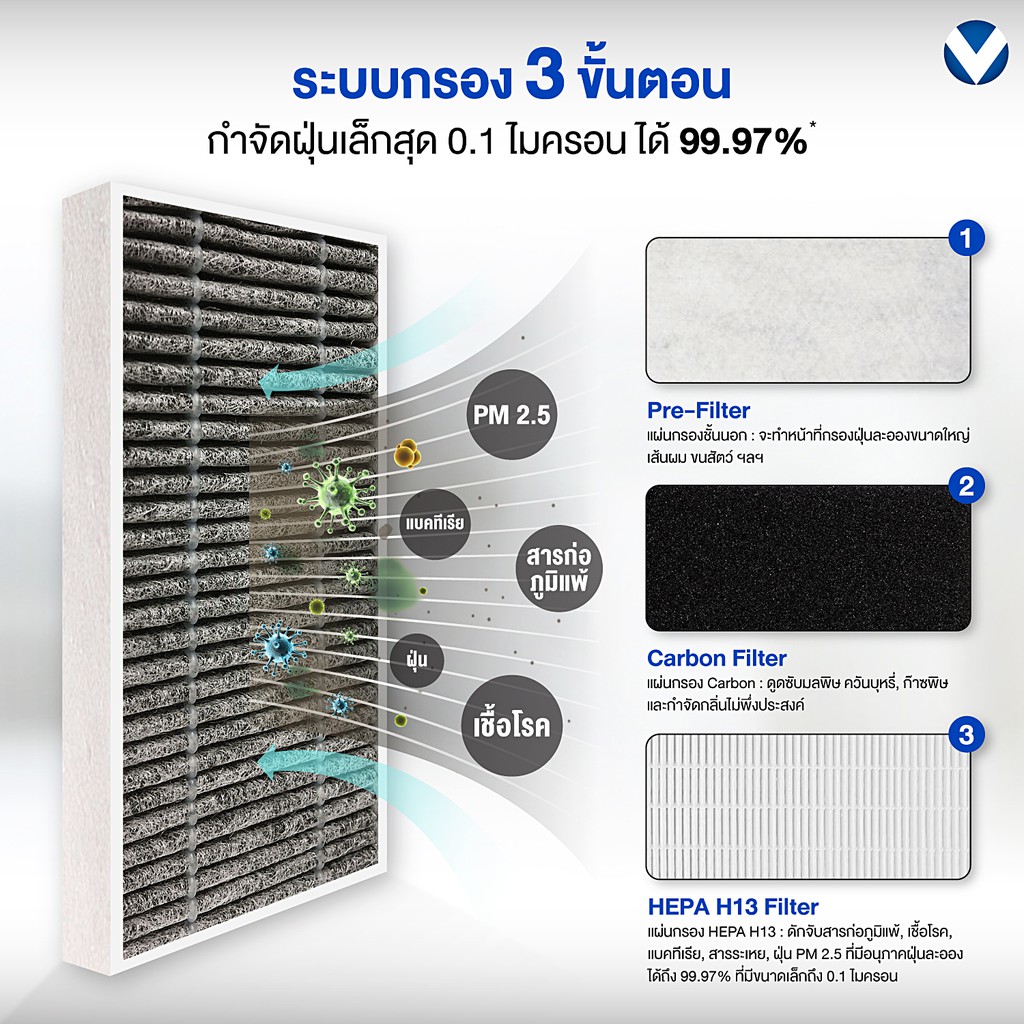 ประสิทธิภาพการกรอง 3ขั้นตอน มั่นใจอากาศสะอาด บริสุทธิ์