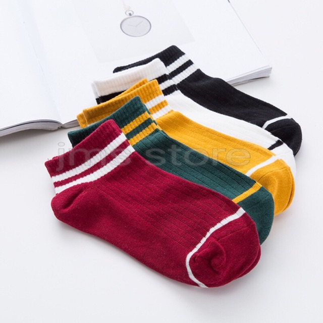 ถุงเท้าข้อสั้น 5สี/10คู่ ลายขีด สีพาสเทล ถุงเท้าแฟชั่น เนื้อผ้านุ่ม พร้อมส่ง