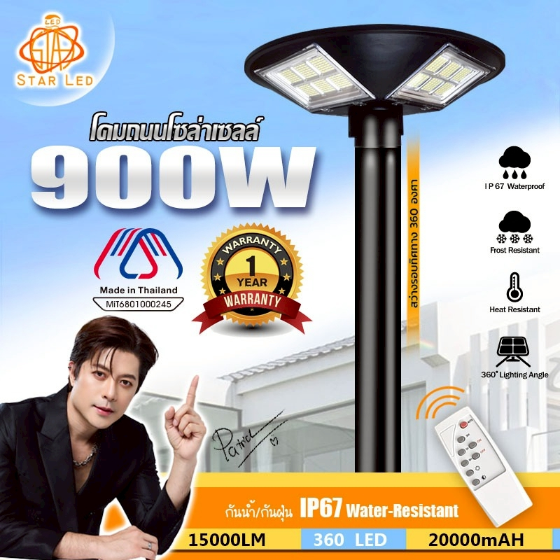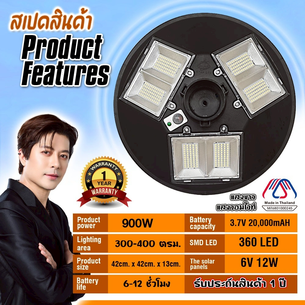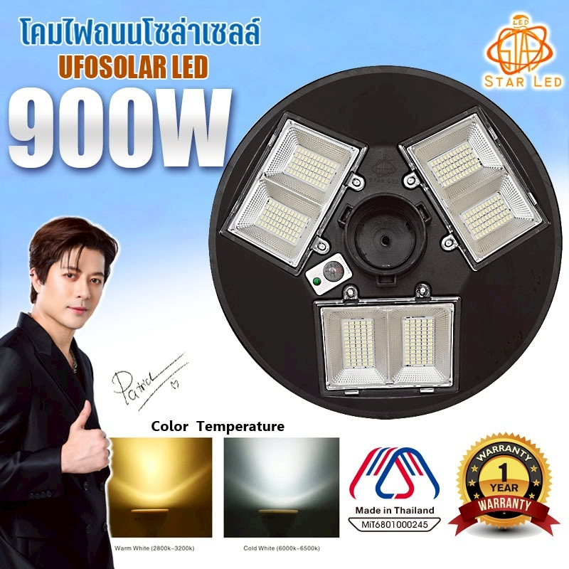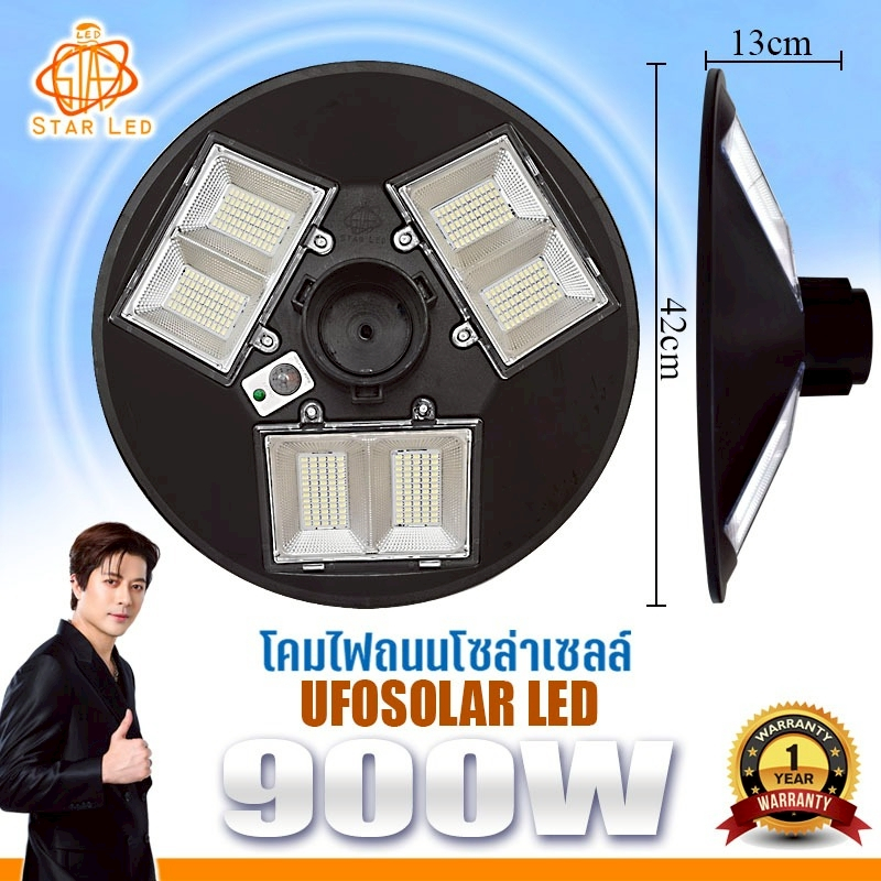 รายละเอียดสินค้า STAR LED!! UFO 900W โคมไฟถนนUFO Square Lightไฟถนน ไฟโซล่าเซลล์พลังงานแสงอาทิตย์Solar Street Light LED 900W6ช่อง วอมไวท์