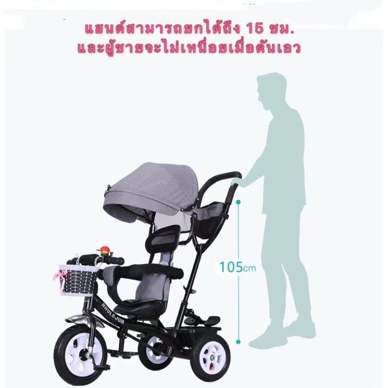 **พร้อมส่งไนไทย*รับประกัน1ปี รถเข็นเด็ก จักรยานสามล้อเด็ก รถเข็นเด็กสามล้อ มีด้ามเข็น ร่มบังแดด เบาะหนังนุ่มกันตก จักรยา