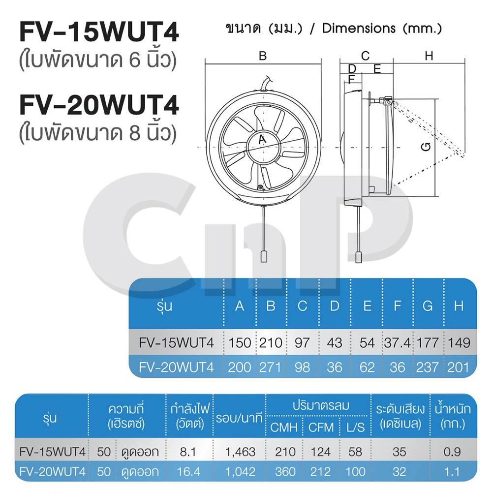 Panasonic พัดลมดูดอากาศ ติดกระจก เชือกกระตุก ใบพัด 6 นิ้ว (6″) รุ่น FV-15WUT