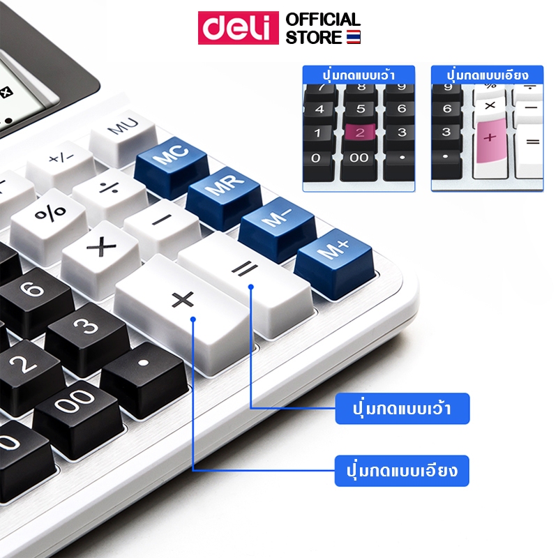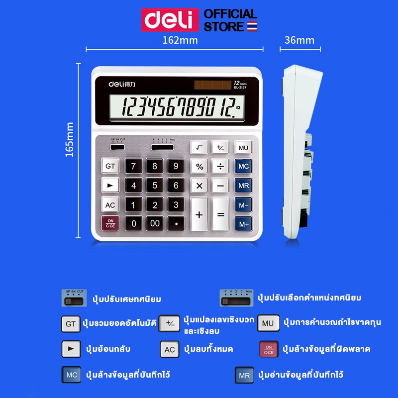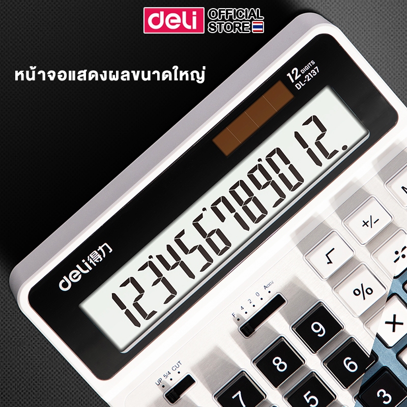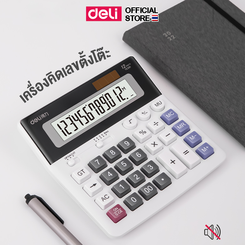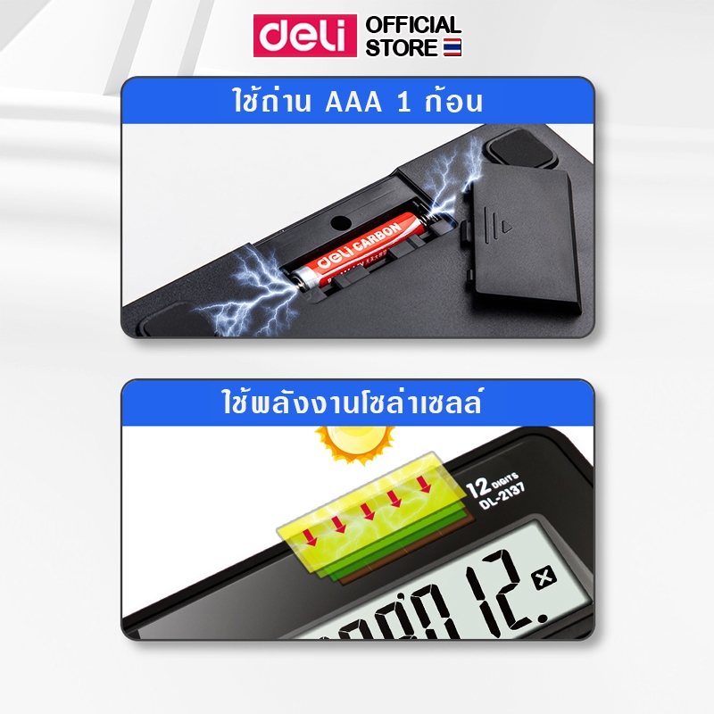 Deli เครื่องคิดเลข 12 หลัก หน้าจอใหญ่ ใช้ได้ทั้งถ่านและโซล่าเซลล์ Calculator จำหน่าย 1 เครื่อง
