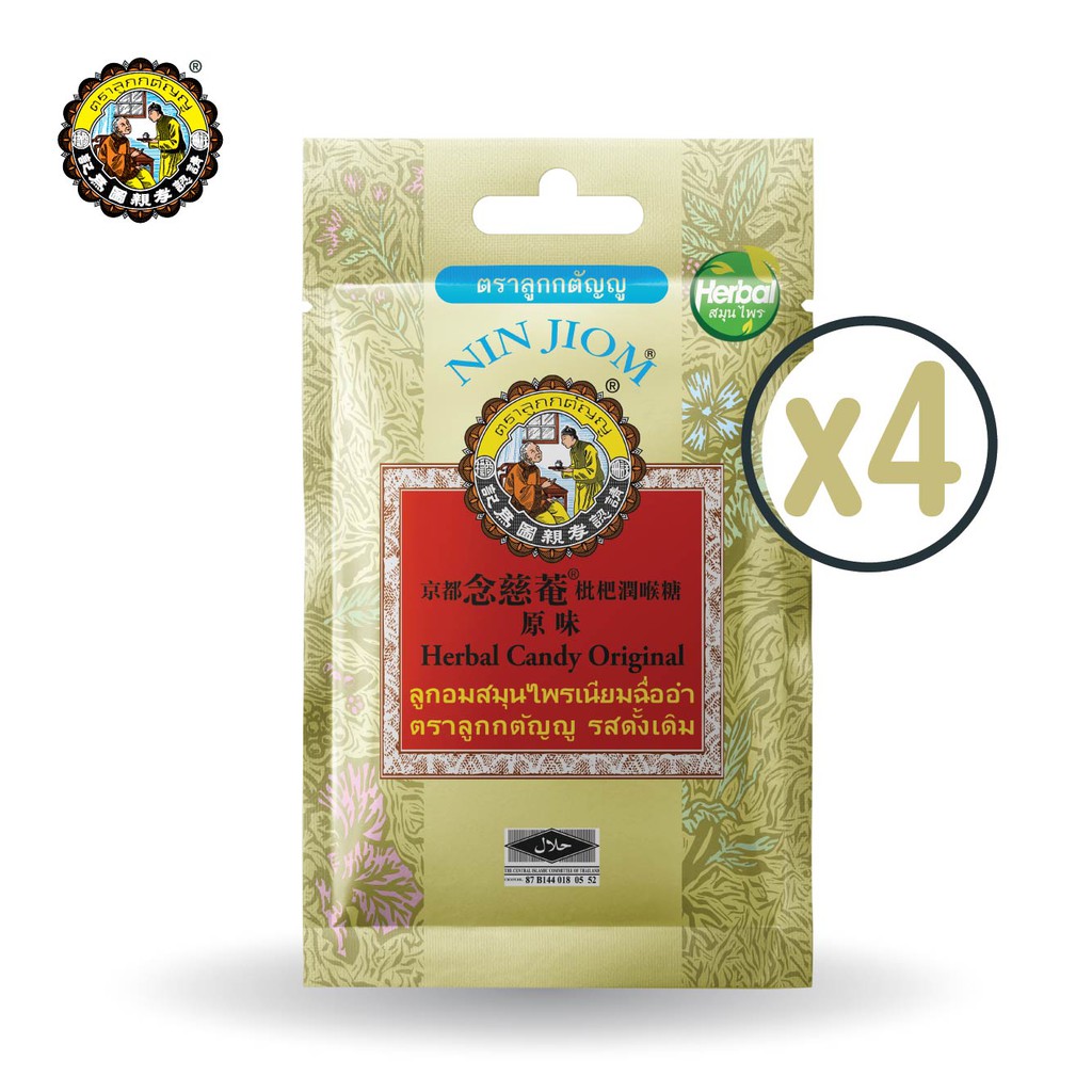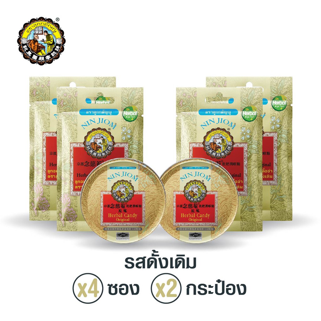 NIN JIOM เนียมฉื่ออำ ลูกอมสมุนไพรตราลูกกตัญญู รสดั้งเดิม (4 ซอง + 2 กระป๋อง)