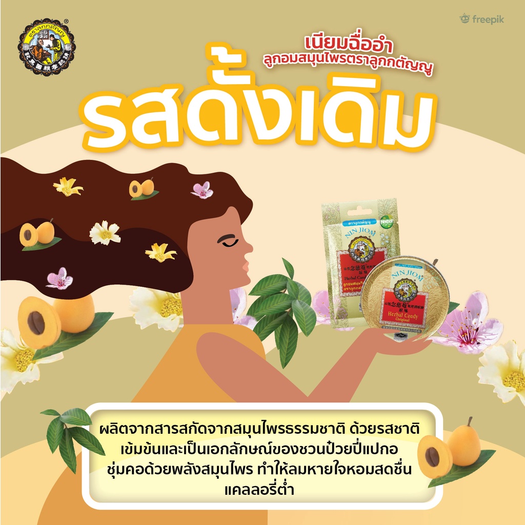 NIN JIOM ลูกอมสมุนไพรเนียมฉื่ออำตราลูกกตัญญู รสดั้งเดิม