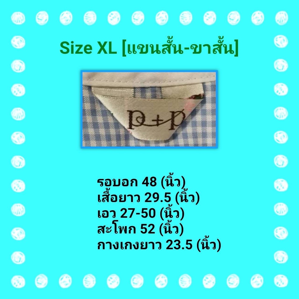 Size XL : รอบอก48" ไหล่กว้าง21" เสื้อยาว29.5" สะโพก52" เอวยืด27-50" กางเก