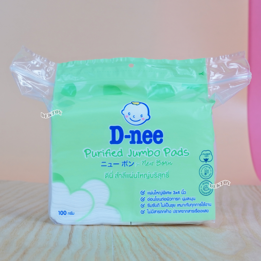 D-nee ดีนี่ สำลีแผ่นขนาดจัมโบ้แผ่นใหญ่พิเศษ 3 x 4 นิ้ว 100 กรัม
