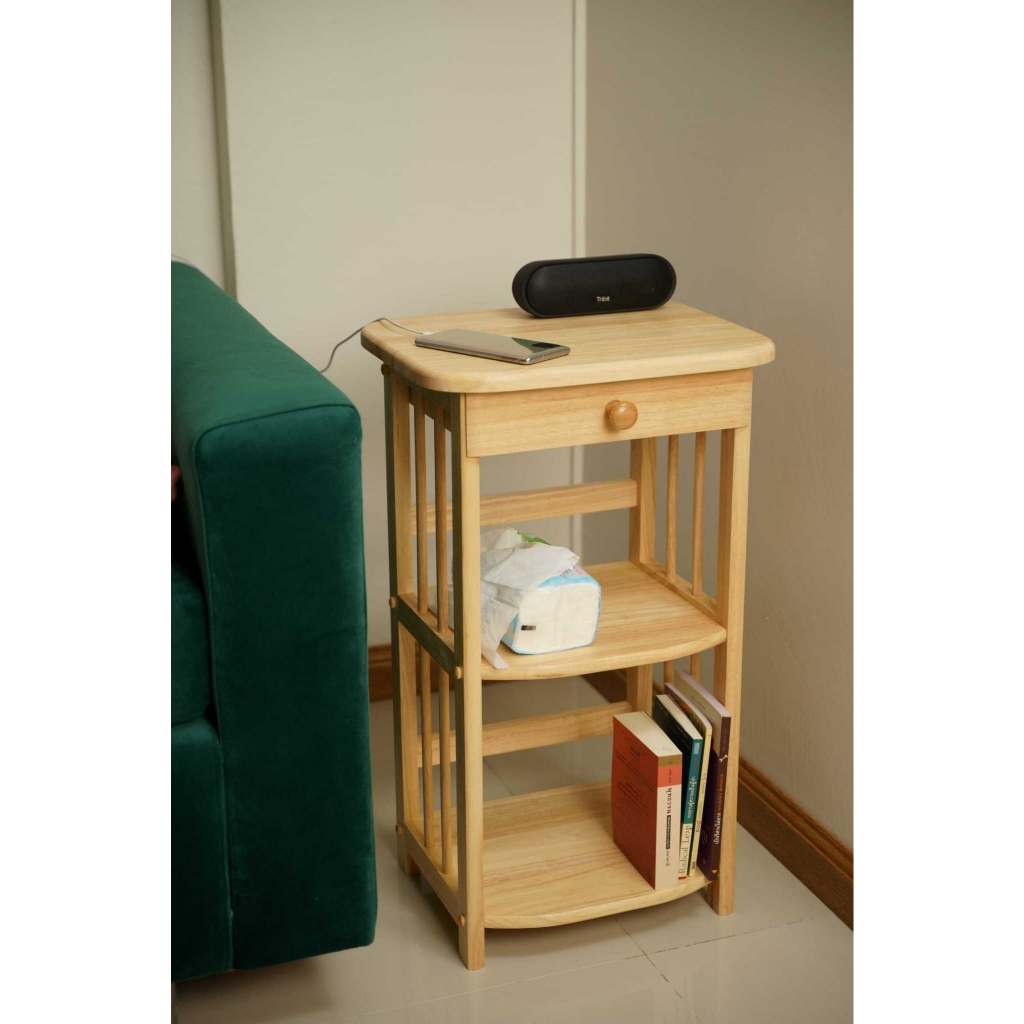 ชั้นวางโทรศัพท์ ที่วางของอเนกประสงค์มีลิ้นชัก ทำจากไม้แท้ เป็นไม้ยางพาราเกรดเอคุณภาพสูง